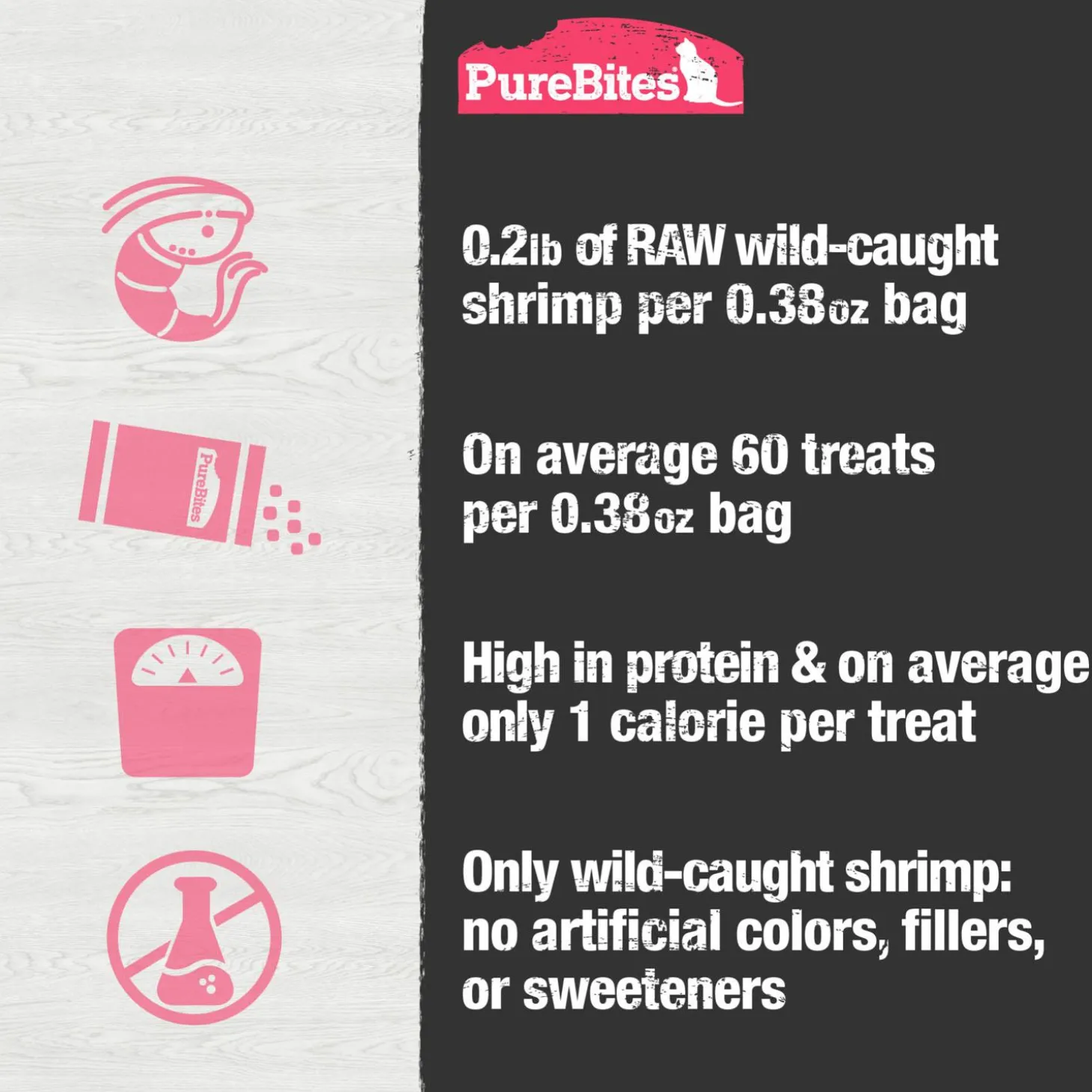 - Made fresh and pure with only 1 ingredient: 100% pure wild-caught shrimp