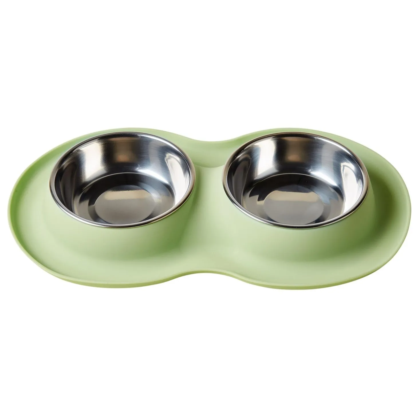 The Essentials Silicone Double Bowl Set gives your dog easy access to two feeding bowls. The raised edges, non-slip base, and fun bone-sized mat make for a cleaner meal time!