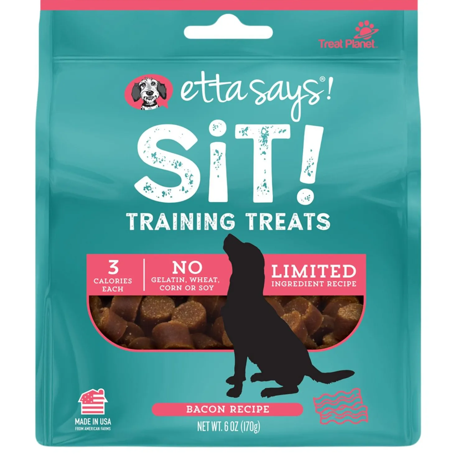 Etta Says! Sit! Bacon Recipe Training Dog Treats are a limited ingredient recipe with no gelatin, wheat, corn, or soy. With only 3 calories per treat, these 100% natural pork and bacon treats are the perfect size for training. As always our treats are 100% made and sourced in the USA.