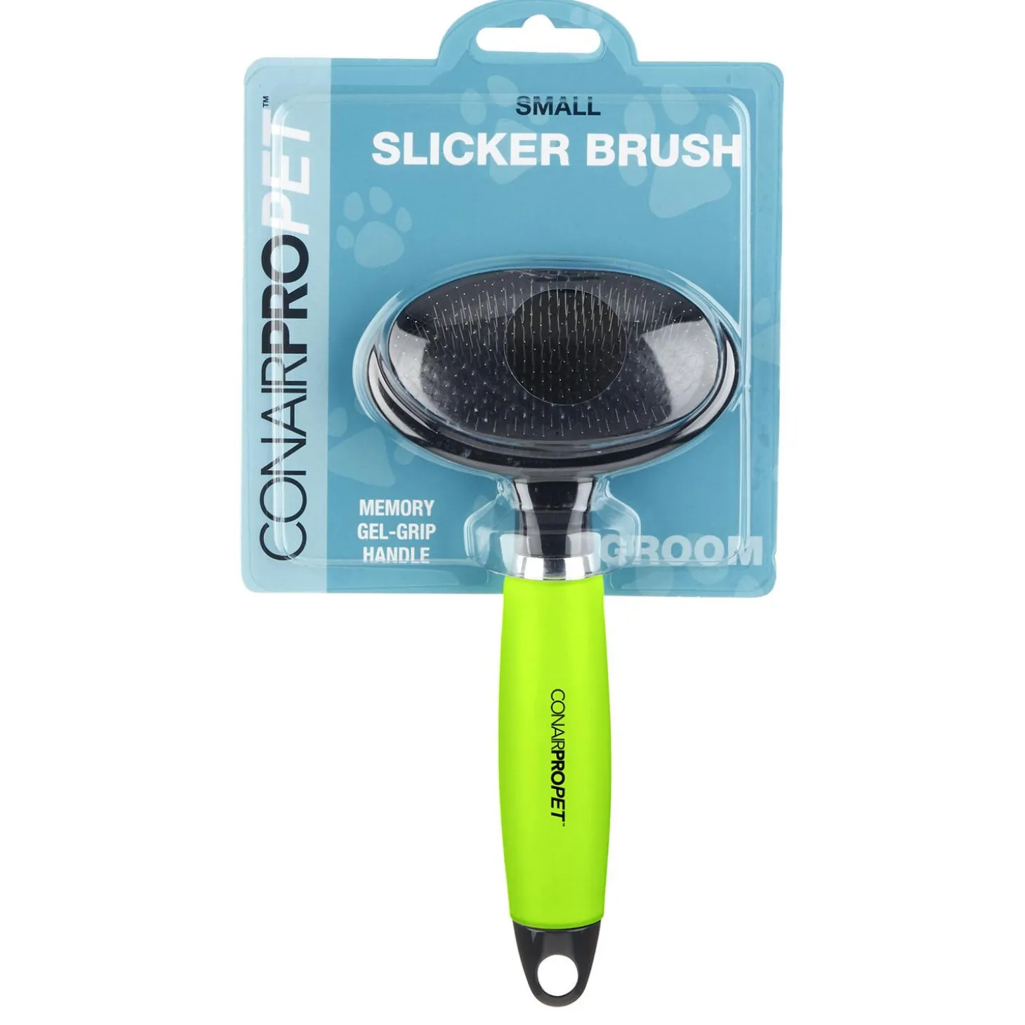 CONAIRPROPET Slicker Brush eliminates tangles, mats, and loose hair during those maintenance grooming session. The brush contains firm, metal pins that penetrate the coat to significantly reduce shedding. Perfect for removing loose hair from the undercoat without damaging your pet’s topcoat. With a memory gel handle, the brush provides a non-slip grip for maximum control and comfort by conforming to the shape of your hand, resulting in less hand fatigue.