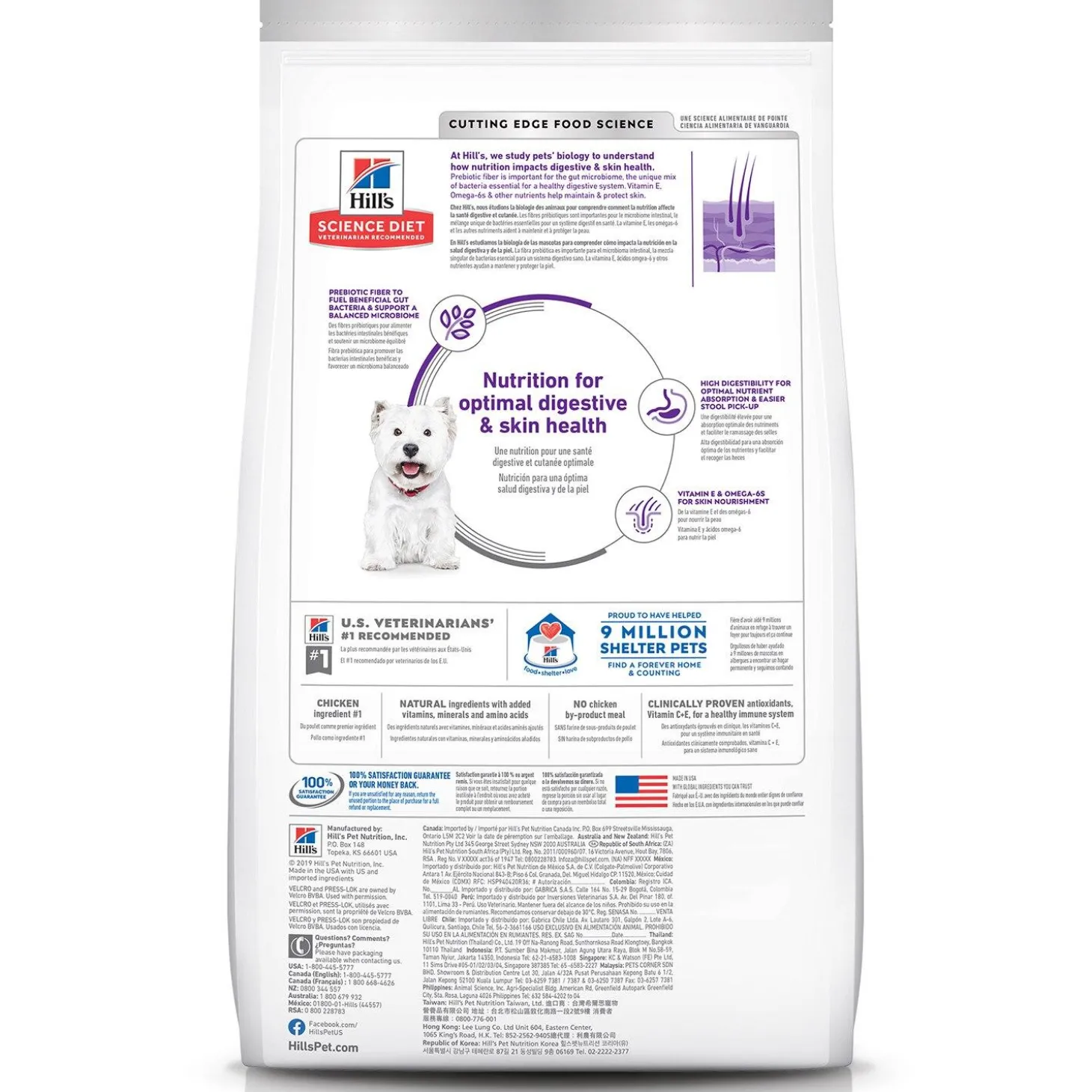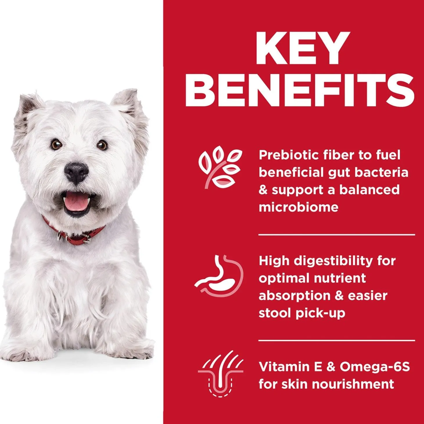 Hill’s Science Diet Small Bites Sensitive Stomach & Skin Chicken Recipe Adult Dog Food provides optimal digestive health while nourishing skin & promoting a lustrous coat.