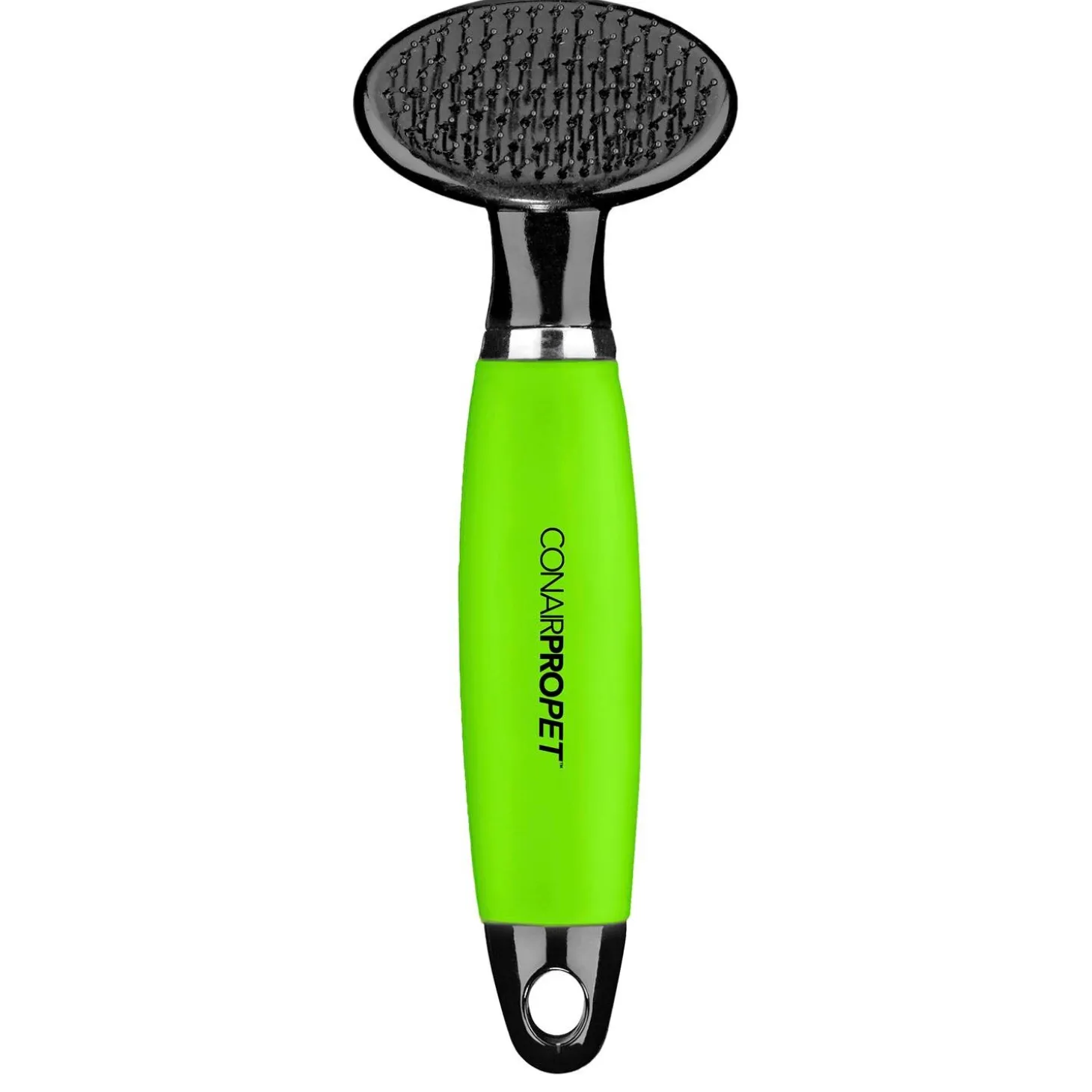 CONAIRPROPET Small Soft Slicker Brush will help to achieve a professionally groomed look for your dog at home. Designed to remove tangles, mats, and dirt – this detangling brush can also fluff your dog’s coat for added volume and significantly reduce shedding. Reinforced coated tips effectively penetrate your dog’s coat ensure effective at-home grooming for your pooch. These extra gentle, soft pins are perfect to brush sensitive parts including the face, paws, ears, and sanitary areas without causing any harm to your dog’s skin. With a memory gel handle, the brush provides a non-slip grip for maximum control and comfort by conforming to the shape of your hand, resulting in less hand fatigue. Made from durable material, this small slicker brush is ideal for small dog breeds under 13.6kg (30lb).