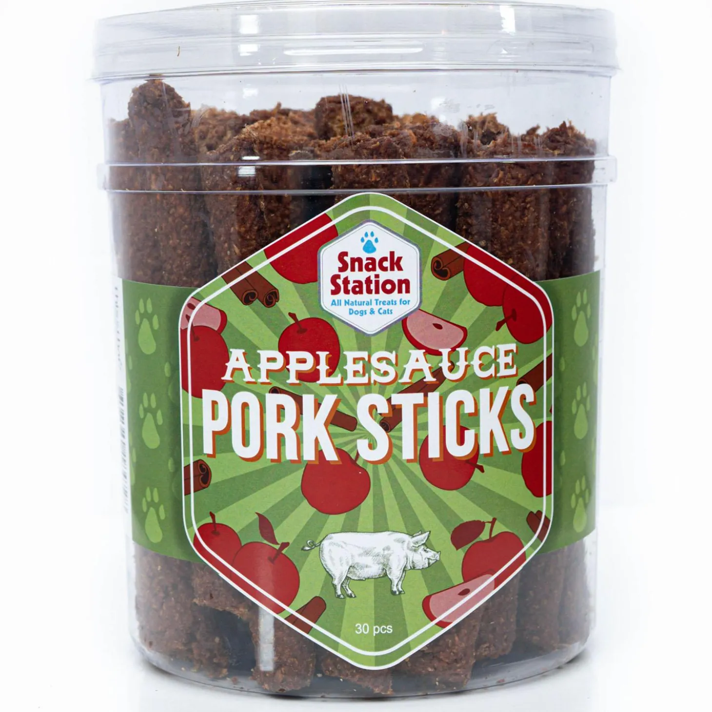 This & That Snack Station Applesauce Pork Sticks Dog Treats make for a high-fibre, high nutrient, teeth-cleaning chew. Made with pork, this tasty treat is an excellent source of amino acids as well as Thiamine, also known as Vitamin B1 which is an essential vitamin for dogs. The apple in this snack provide vitamin A, vitamin C and dietary fibre, making it the perfect treat to help support your pups immune system!