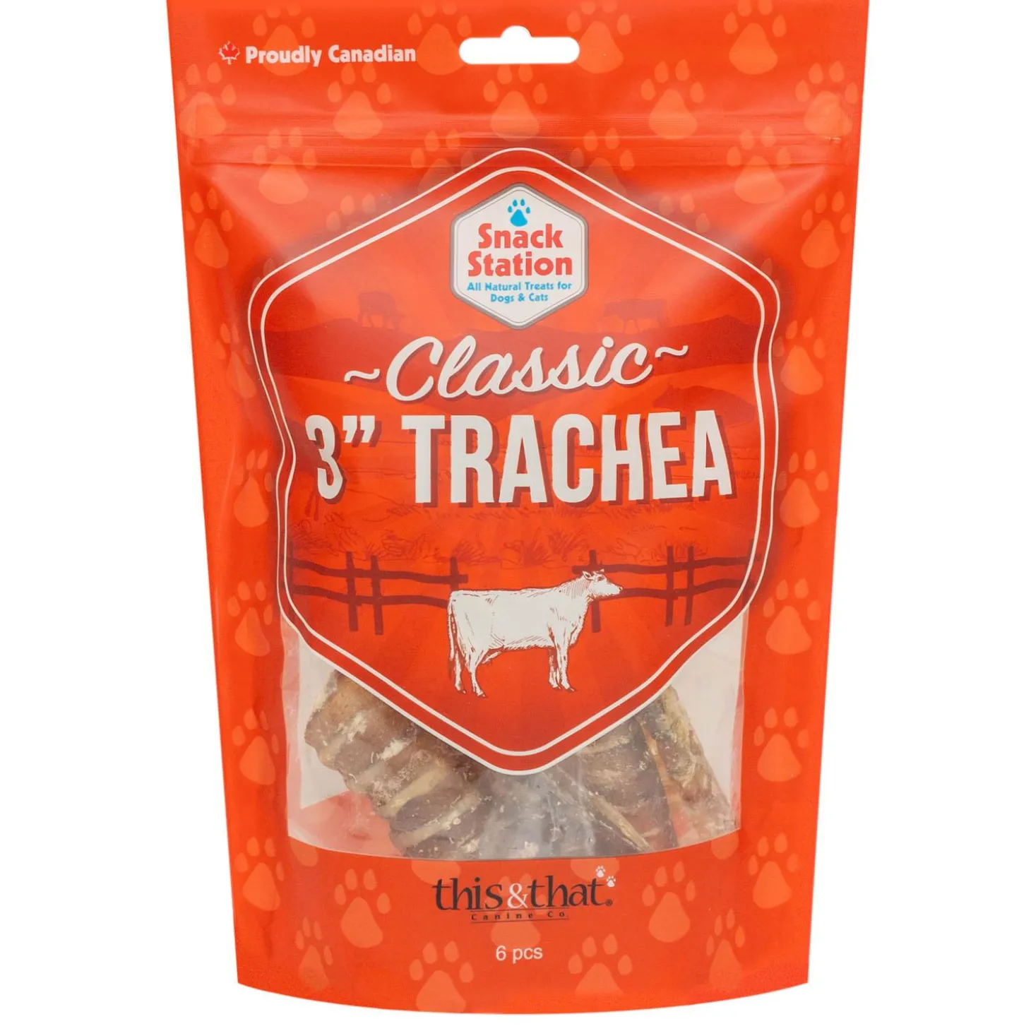 This & That Snack Station Beef Trachea Dog Treats are dehydrated and make for a crunchy and stimulating chew. Rich in Glucosamine and Chondroitin make for a great hip and joint chew that promotes dental health. Ideal for small to medium dogs.