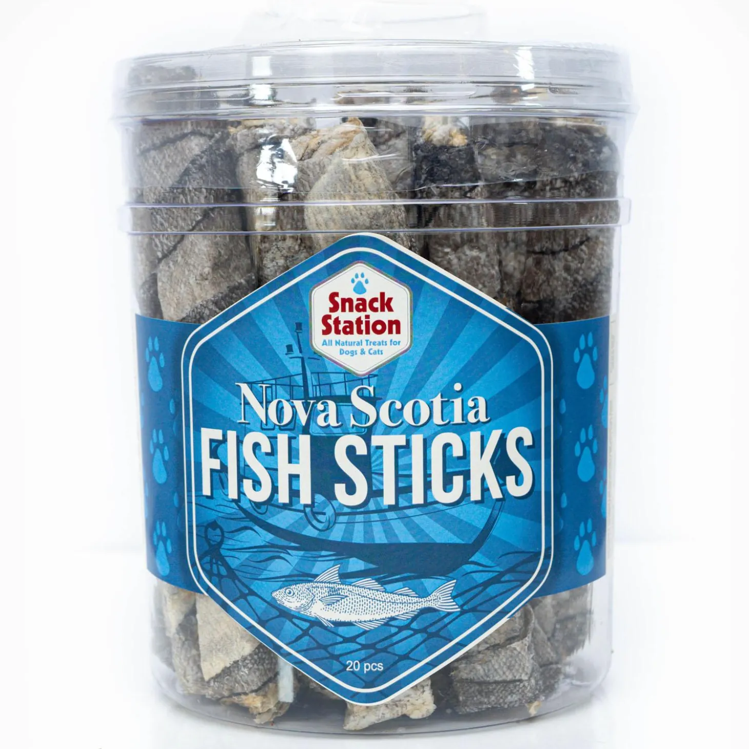 This & That Snack Station Nova Scotia Fish Sticks Dog Treats are made from hand-rolled, Nova Scotian, cold-water haddock skins. These tasty treats can be given to both dogs and cats. Packed with protein, Omega-3’s for healthy skinand coat, and a great option for dental health and for pets with allergies.