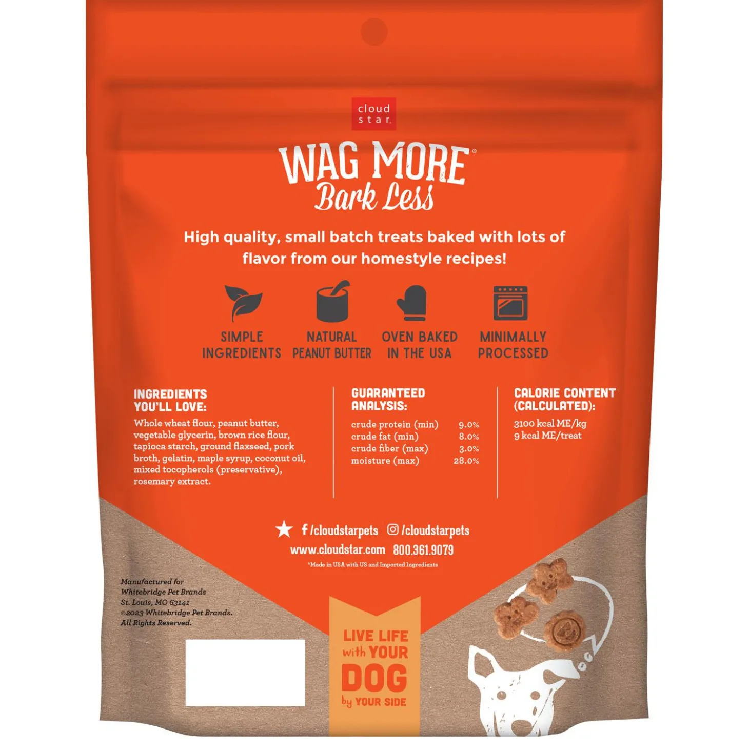 Wag More Bark Less Soft Chews with Natural Creamy Peanut Butter Dog Treats offer guilt-free indulgence for your best friend. Made just how you’d make it, these minimally processed soft chews are oven-baked in small batches in the USA using natural peanut butter, and high-quality ingredients. They are also free of corn, wheat, soy, animal by-products, and artificial flavours and colours. Give your dog what gets their tail moving!