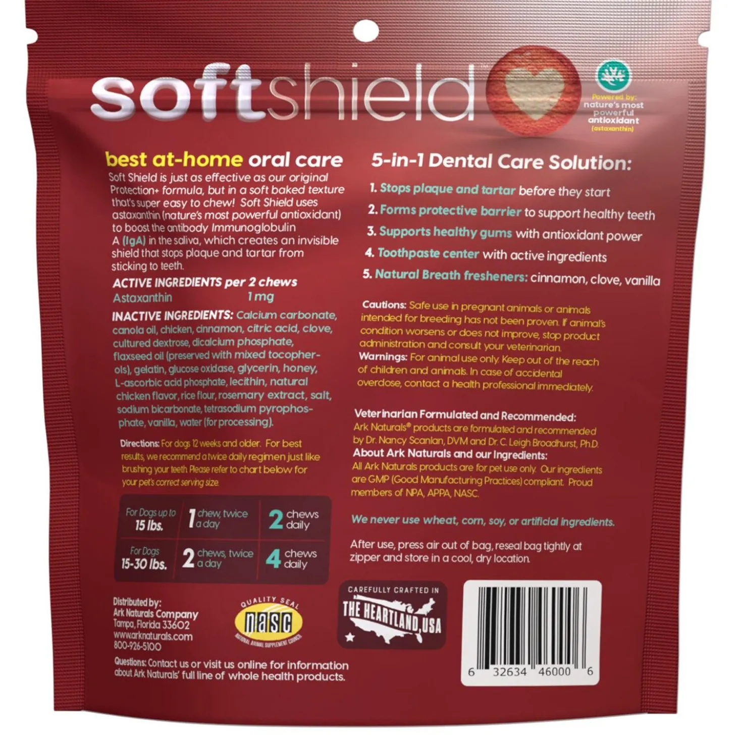 Ark Naturals Soft Shield Pro+ Brushless Toothpaste Dog Treats shouldn’t be limited to super chewers! This yummy treat is the first of its kind, soft baked dental chew. These 5-in-1 natural and tasty chews have all the same benefits as our original Protection+, like stopping plaque and tartar before it starts. They also support healthy gums, starting from the inside out by harnessing the antioxidant power of astaxanthin to increase protective antibodies in the saliva and form a protective barrier on teeth. And we couldn’t forget our signature toothpaste center that provides polishing action! Natural breath fresheners: cinnamon, clove, and vanilla are tasty and will have your pup begging for two a day!