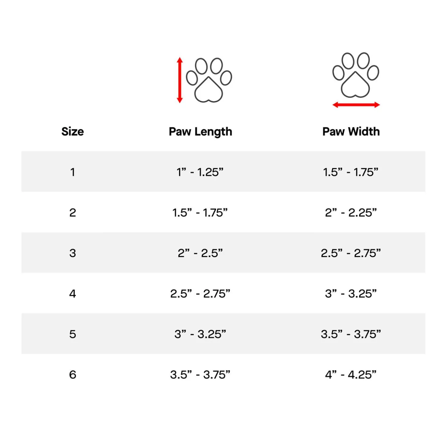 | Size | Paw Width | Paw Length |