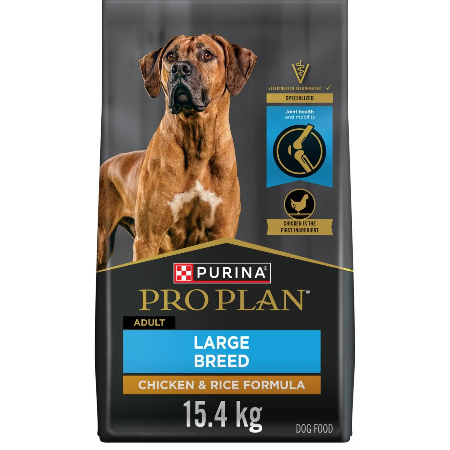 Purina Pro Plan Specialized Chicken & Rice Formula Large Breed Adult Dog Food tends to your large breed dog’s specific nutritional needs. Real chicken as the first ingredient of this large breed dog food helps provide protein, an essential nutritional building block within your dog’s body. Plus, this highly digestible formula promotes nutrient bioavailability, which means it is formulated to support optimal nutrient absorption. With 26% protein and 12% fat in every serving of this dog food for large breeds, this formula helps to maintain your dog’s ideal body condition. Every high-quality ingredient is carefully chosen for a specific nutritional or functional purpose, so your canine companion gets the wholesome goodness you expect from a trusted pet food brand in every delicious bowl. Formulated for large breed dogs weighing 50 pounds and over, this super-premium dry dog food offers 100% complete and balanced nutrition for adult dogs.