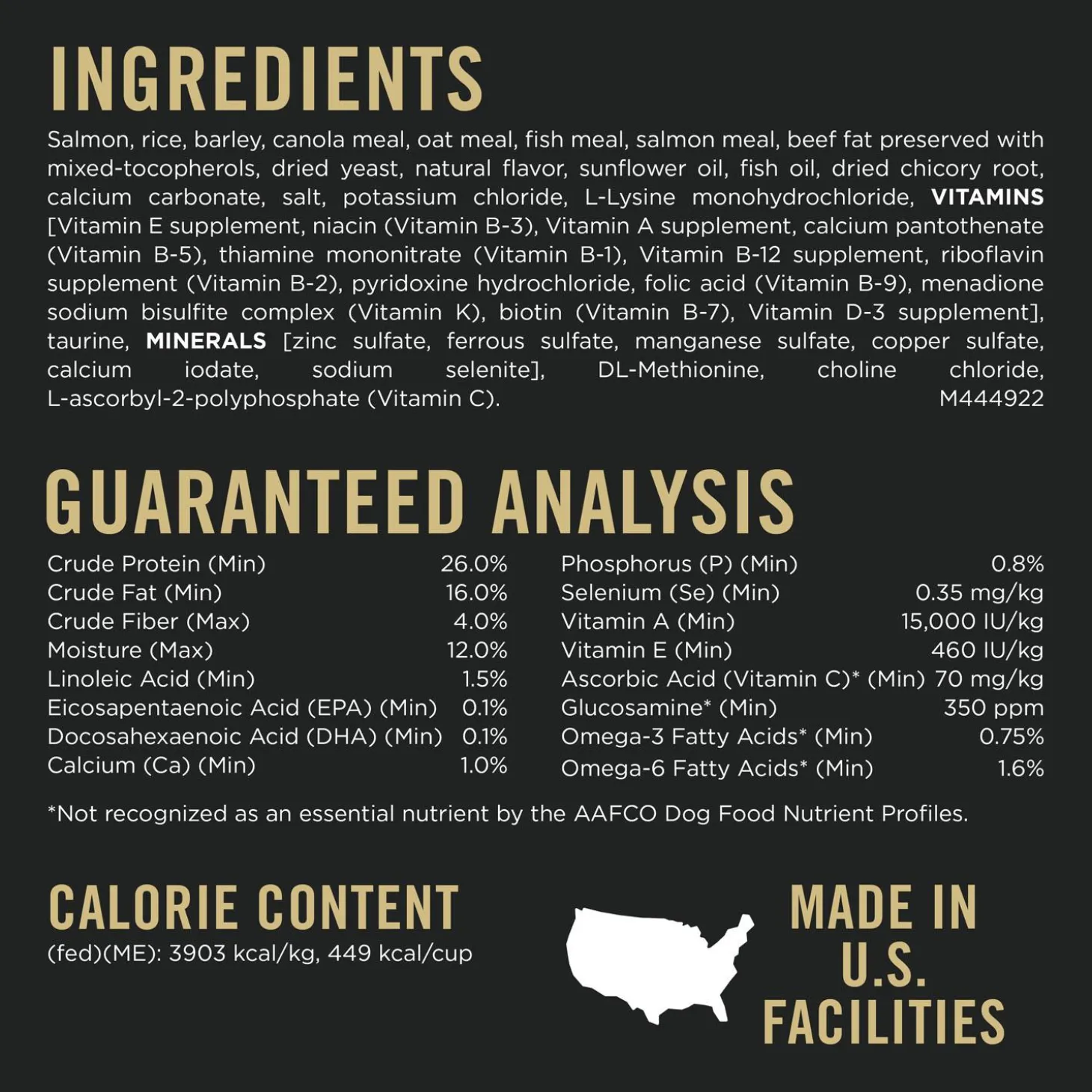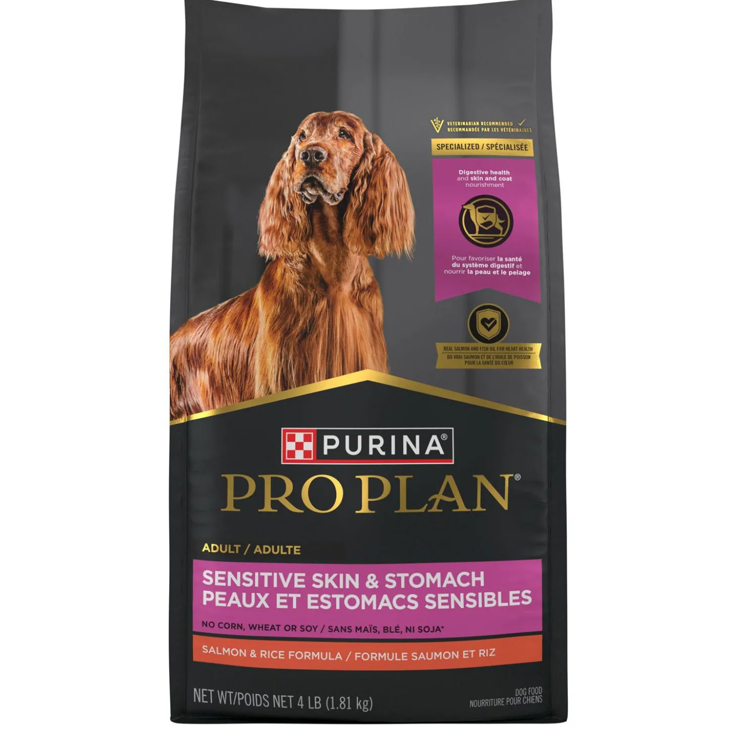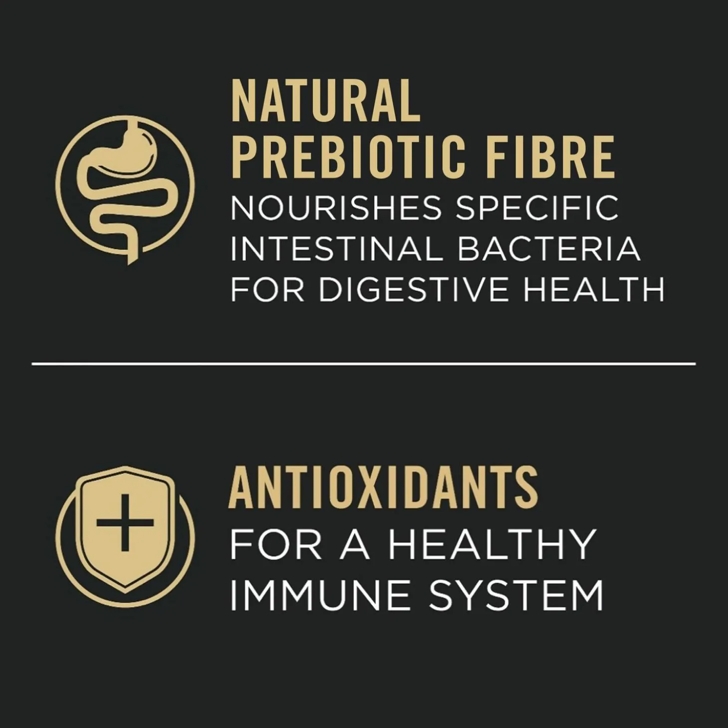 Purina Pro Plan Specialized Sensitive Skin & Stomach Salmon & Rice Formula Adult Dog Food will help nurture your dog’s sensitive skin and stomach. Nutrient-rich salmon is the first ingredient in this high protein dog food. Plus, the prebiotic fibre in this dog food for sensitive stomachs nourishes the beneficial bacteria found in your dog’s intestine for their digestive health. Antioxidants deliver immune support for your dog, while rice and oatmeal provide easily digestible sources of carbohydrates. Meanwhile, fish oil for dogs, rich in omega-3 fatty acids EPA and DHA, helps support healthy joints, while omega-6 fatty acids and vitamin A nourish your dog’s skin and keep their coat looking healthy. This dog kibble is formulated without corn, wheat, soy or artificial colours or flavours.