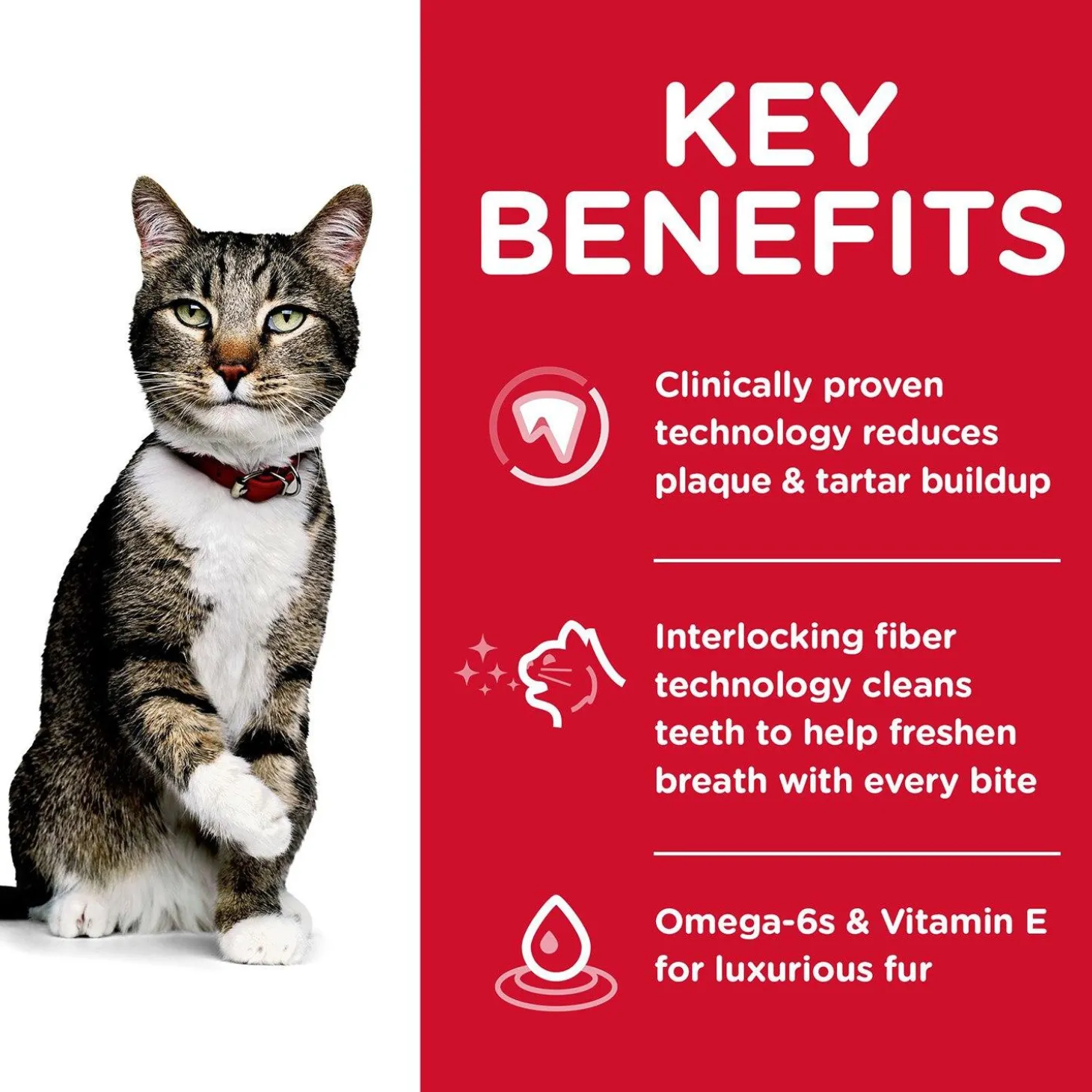 - Clinically proven kibble technology to reduce plaque and tartar buildup in adult cats