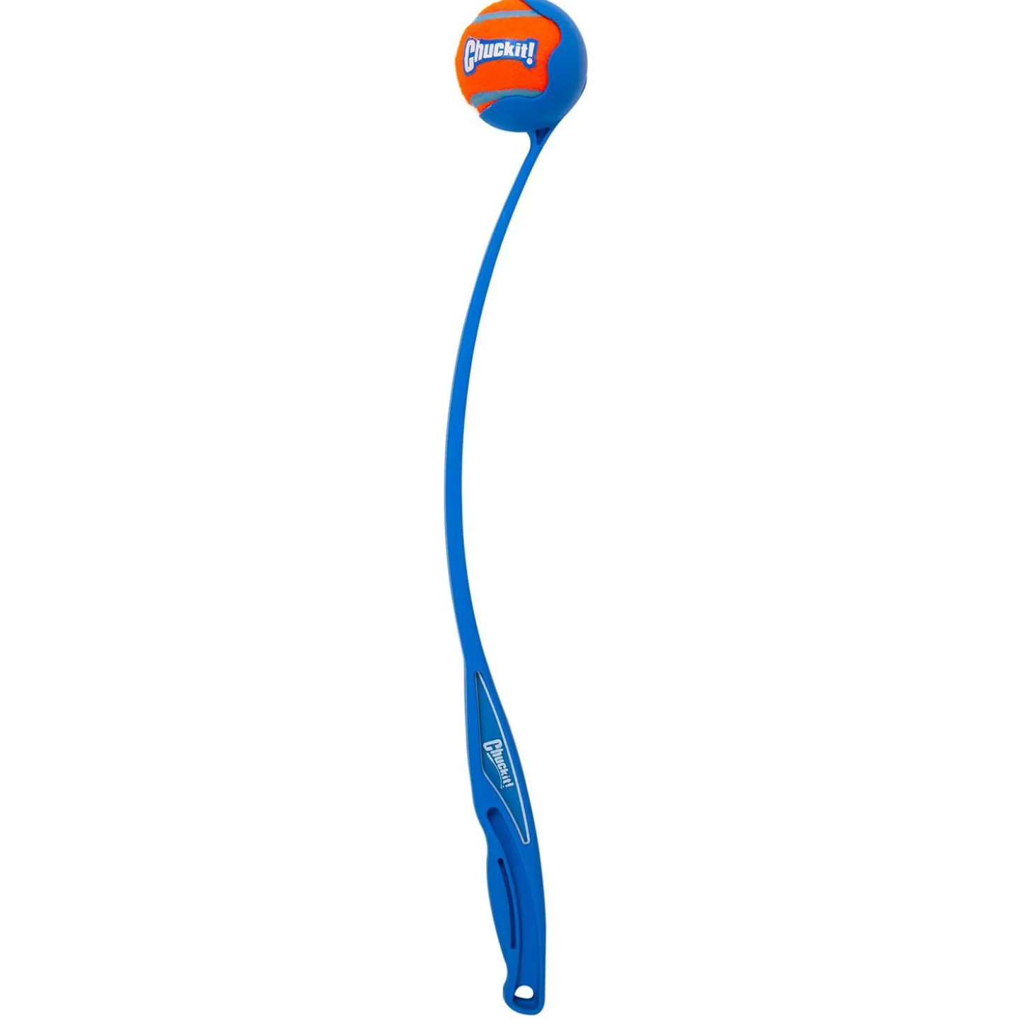 Chuckit! Sport Launcher 26L Dog Toy is a terrific way to exercise your dog without wearing yourself out! Throw balls 2 to 3 times farther with this Ball Launcher. Hands-free pickup – no more slobbery balls. Ergonomic rubber handle for ultimate comfort and control. Made from durable lightweight flexible plastic. Use with standard tennis balls or Chuckit! compatible balls only. Each Launcher comes with a standard Chuckit! Tennis Ball. Made in the USA.