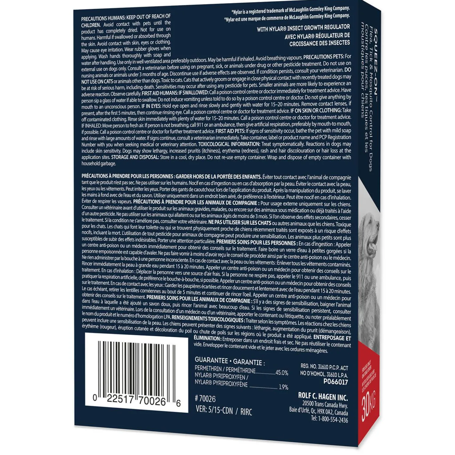 Sentry Squeez-On Flea Tick & Mosquito Control for Dogs 15-30kg is a a topical “squeeze-on” treatment that is easy to use to control insects. It inhibits flea eggs laid on treated dogs from developing into biting adults for 2 months and controls fleas, mosquitoes, brown dog ticks, blacklegged (deer) ticks and American dog ticks for up to 3 weeks. Reinfestating fleas are killed within 1 hour. It kills and repels ticks including the Deer Tick (vector of Lyme Disease) and also kills and repels mosquitoes (vector of Heartworm and West Nile Virus).
