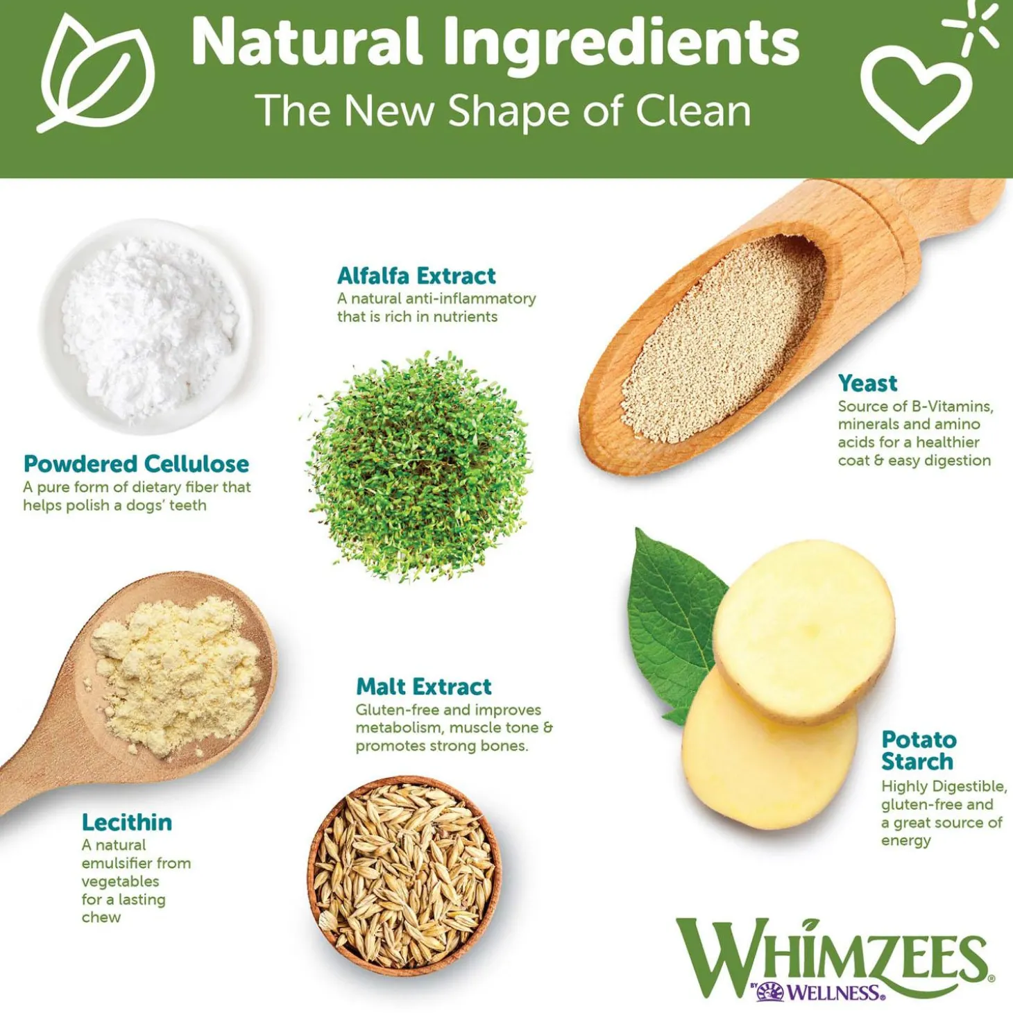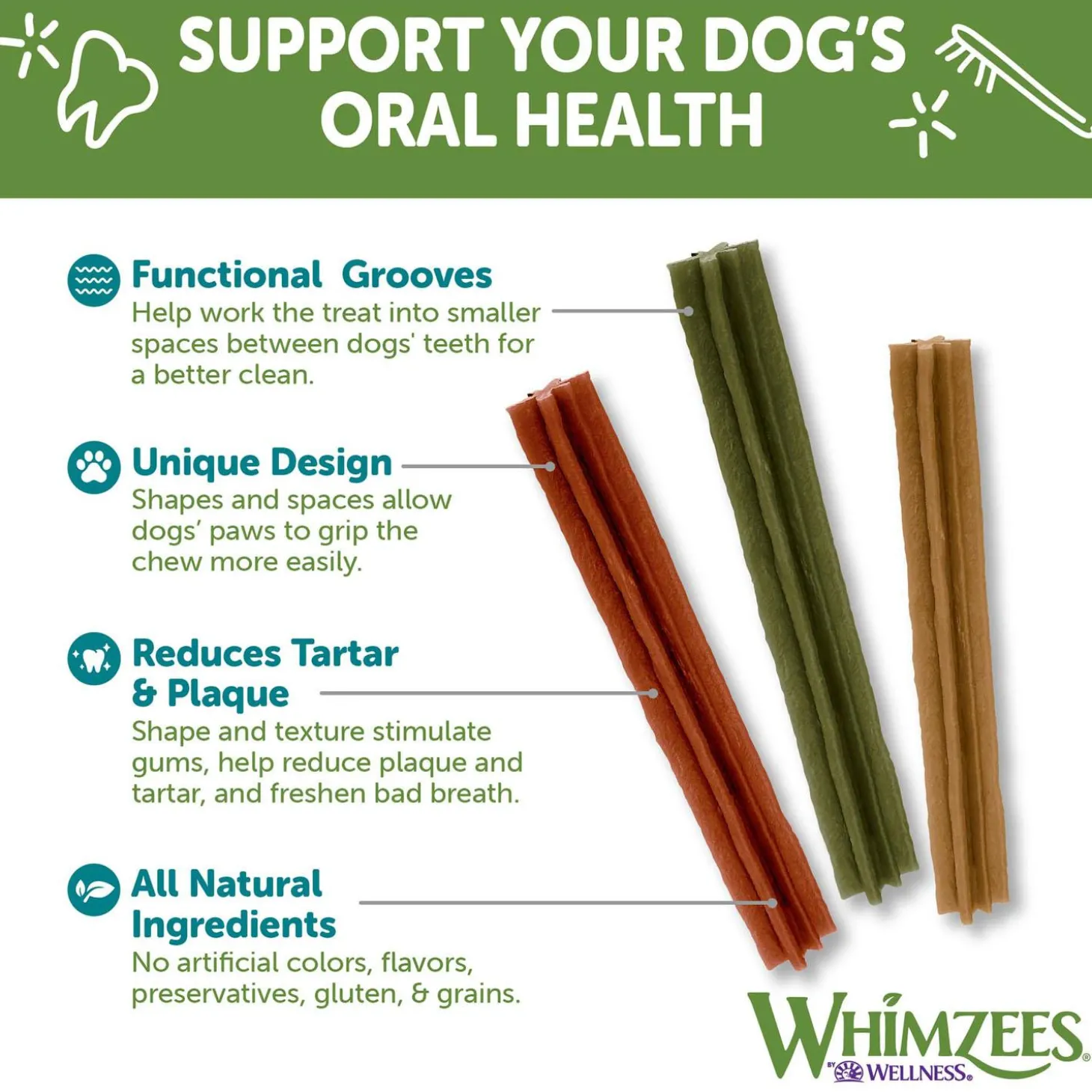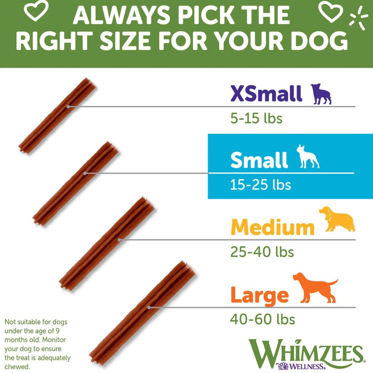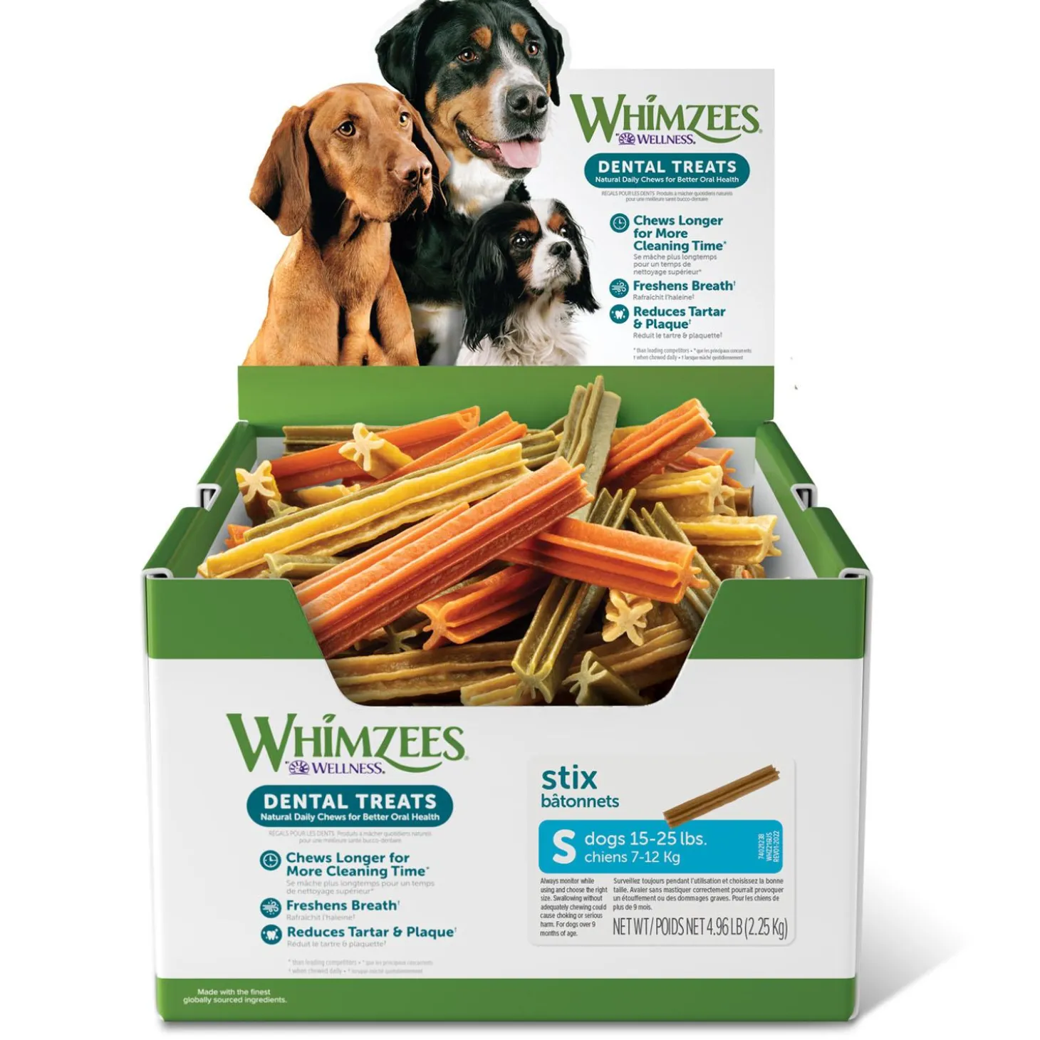 Whimzees Stix Small Chews Dog Treats are treats your dog will always want to fetch. Made with all-natural ingredients, these long-lasting dental chews will help reduce plaque and tartar while your dog enjoys a tasty treat. Say goodbye to bad breath and hello to a clean, healthy mouth.