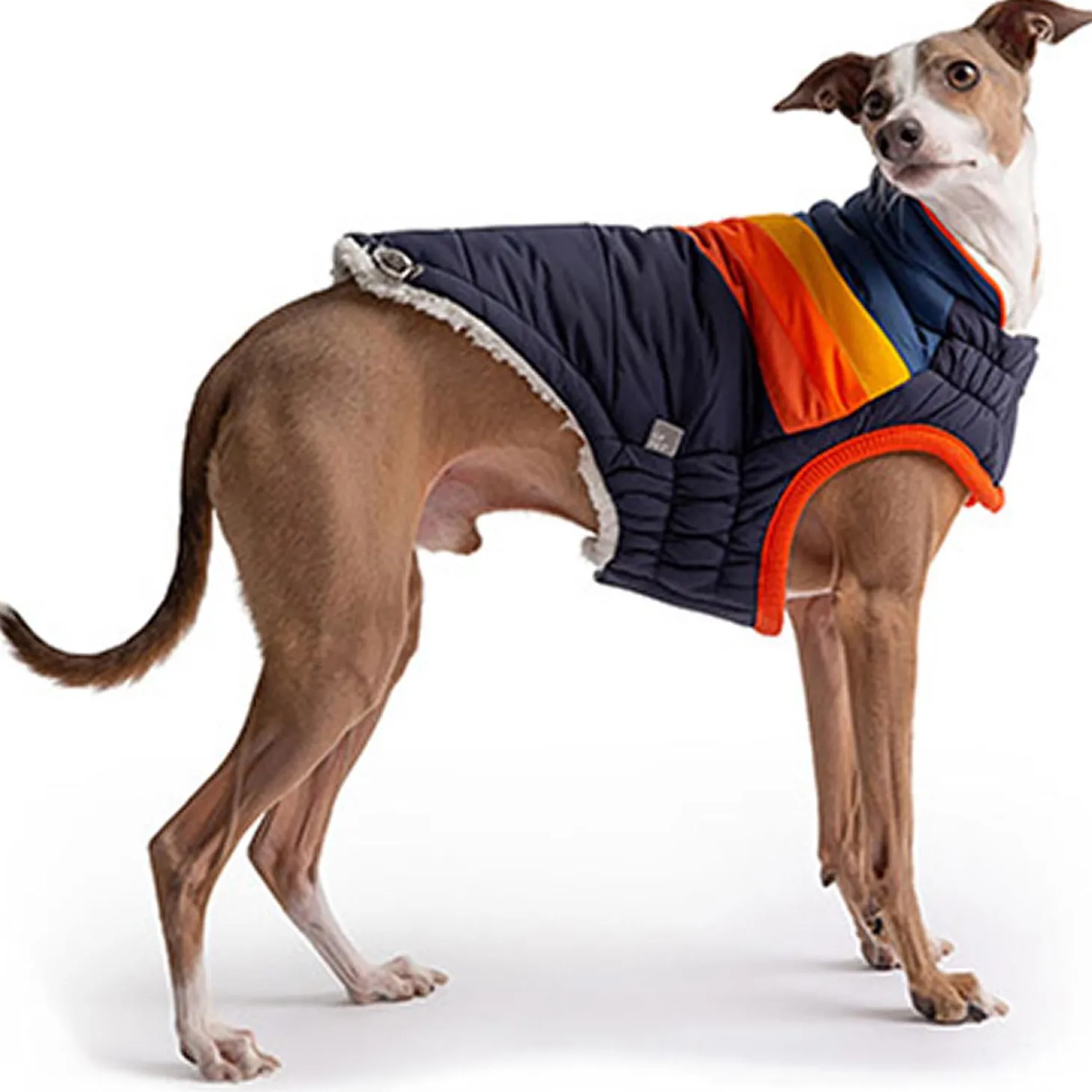 GF Pet Summit Navy Puffer is the best match for sporty dogs. Its’ retro design with contrast piping combine modern with classic, and bold with simple. The snuggly popcorn sherpa lining is soft and warm. Water resistant and super adjustable, with Elasto-Fit technology! A great fit for any adventure!