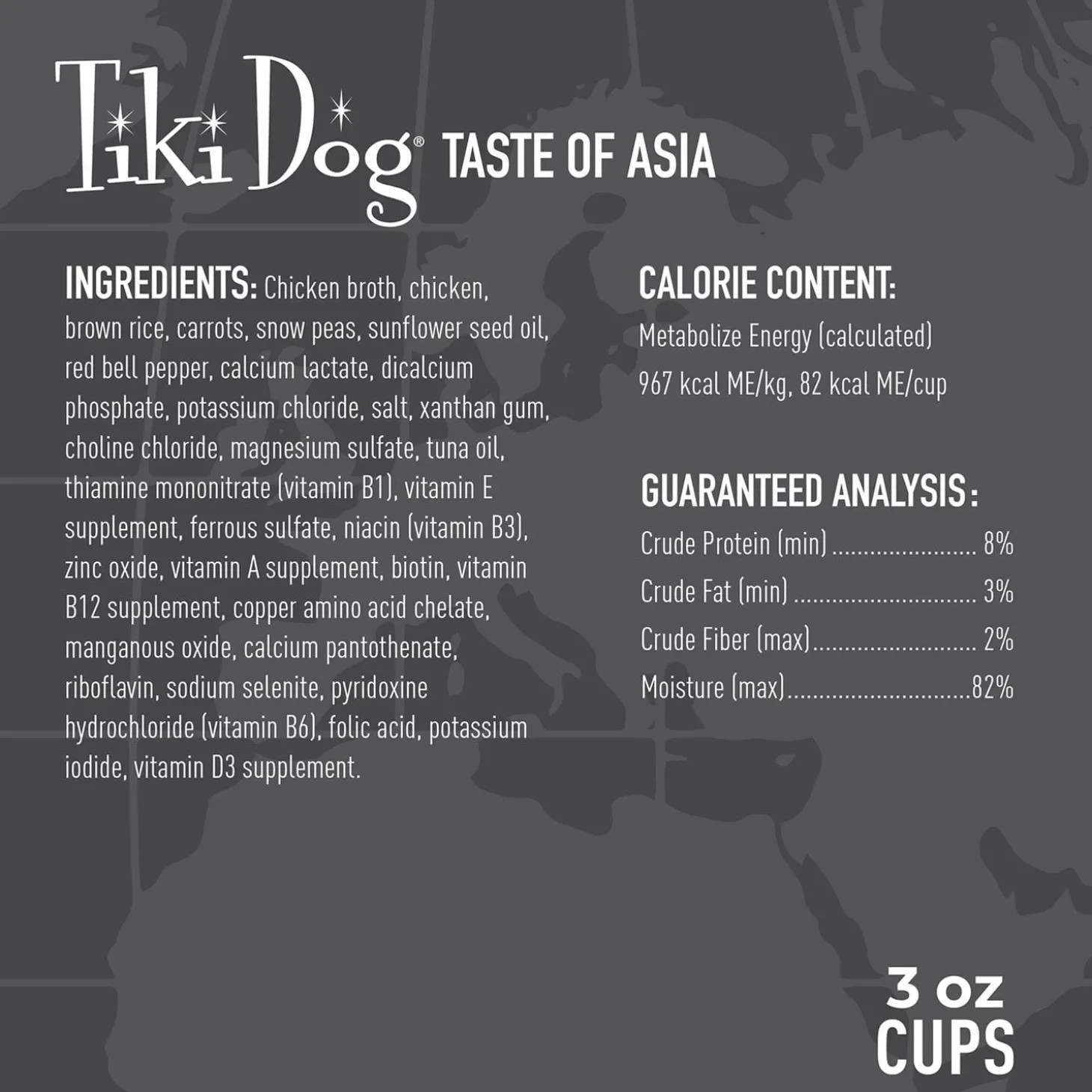 Tiki Dog Taste of the World Asia Chicken & Snow Peas Stir Fry Recipe in Broth Adult Dog Food will indulge your dog with a taste of international cuisine. These restaurant-inspired meals feature whole, recognizable ingredients. Tiki Dog offers drool-worthy taste in the nutrition that dogs need! Designed with the highest standards in nutrition to keep dogs in optimal health, and you can see it in every bowl.