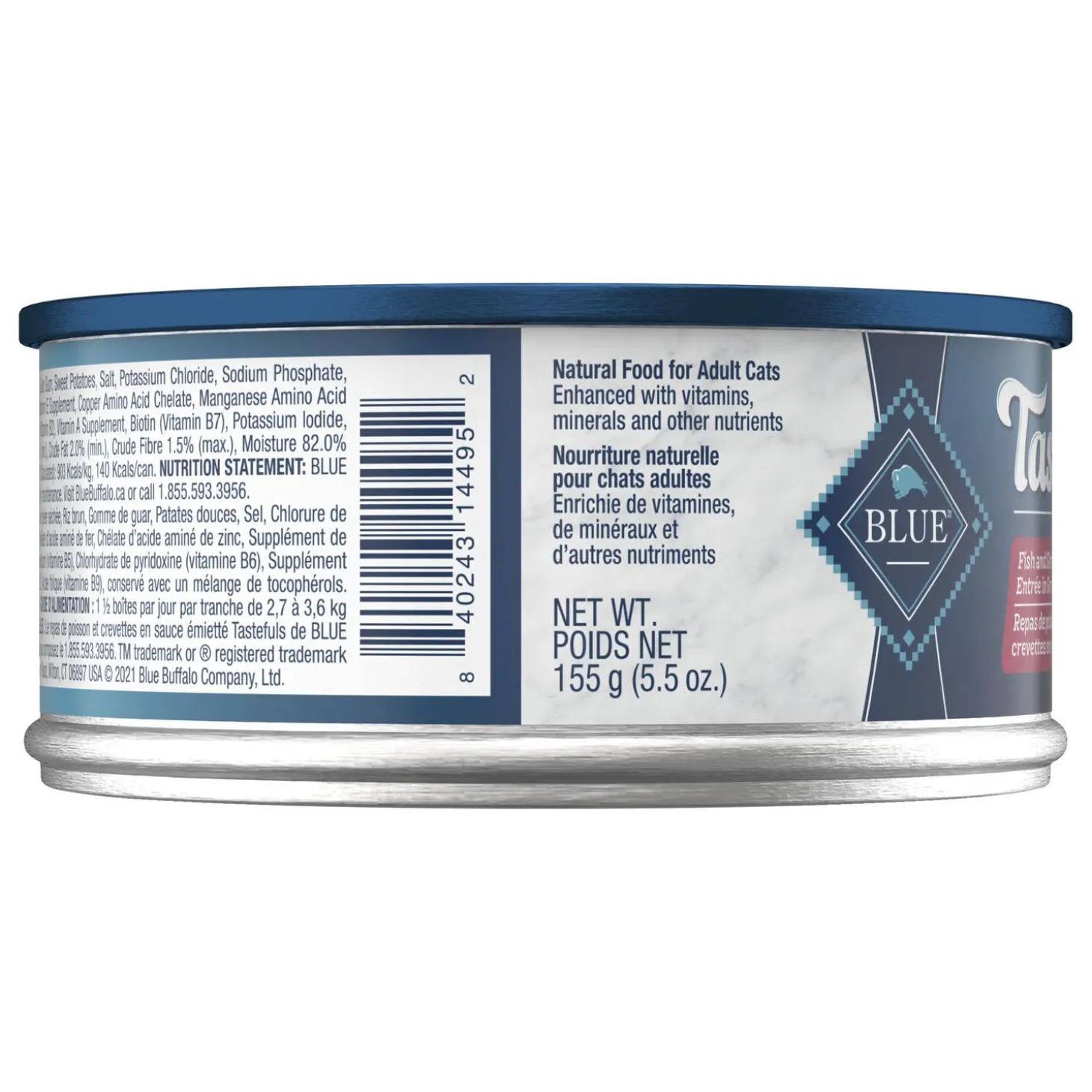 Blue Buffalo Tastefuls Flaked Fish and Shrimp Adult Cat Food is so delicious, your cat will keep coming back for more. This wet cat food starts with tender flakes of high-quality fish, plus shrimp, brown rice and sweet potatoes in savory gravy. Made from the finest natural ingredients enhanced with vitamins, minerals and other nutrients, Tastefuls canned cat food has the great taste cats want with the healthy ingredients you prefer feeding. Let your cat try this mouthwatering flaked entree to see why one taste is all it takes!