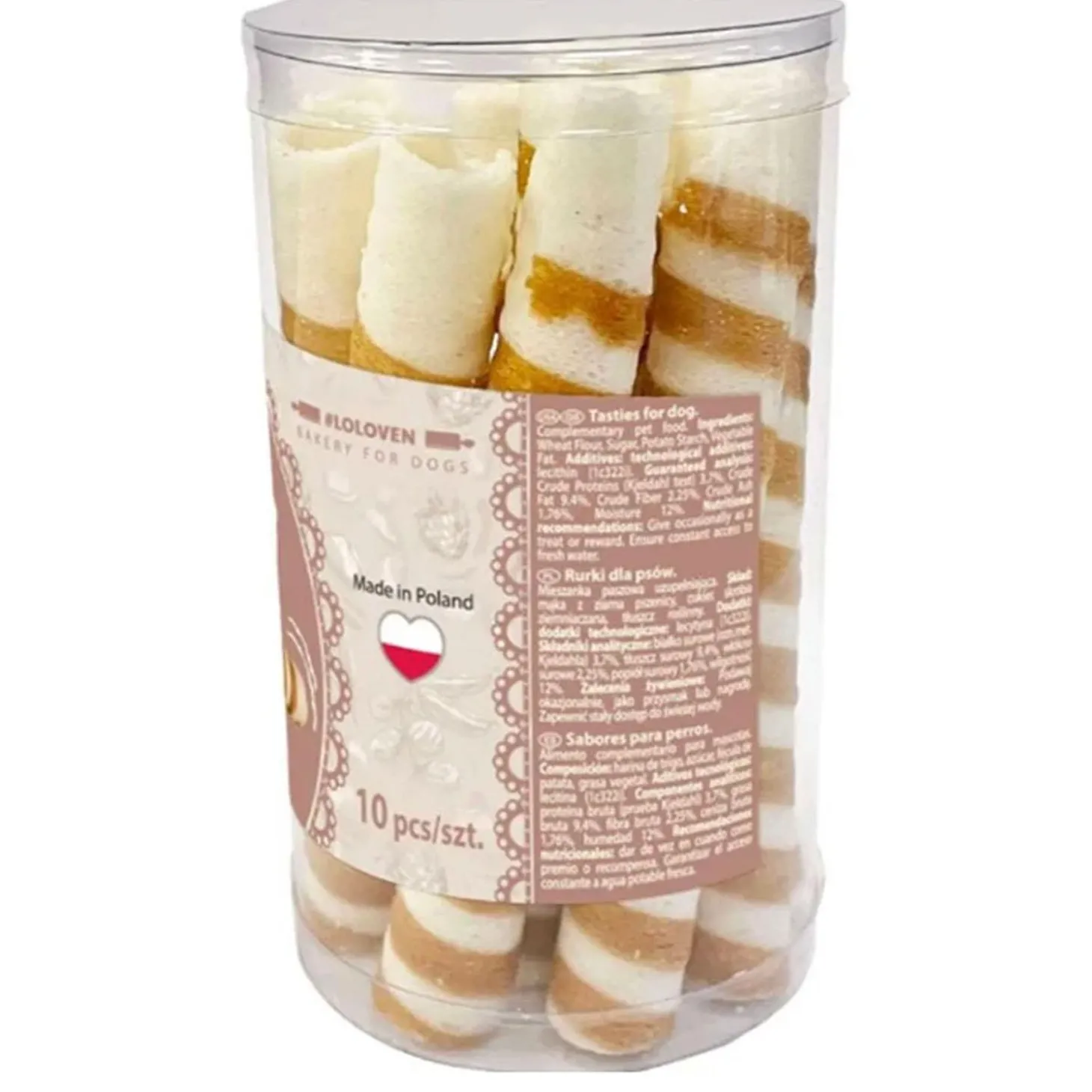 LoLo Pets Classic Tasties Waffle Straws Dog Treats are sweet snacks for dogs that can be used as a reward during training and taming pets. The proper hardness of treats for dogs is crucial for their oral health, safety, and providing adequate mental and physical stimulation. Each tube contains 10 treat sticks and should be given a treat only.