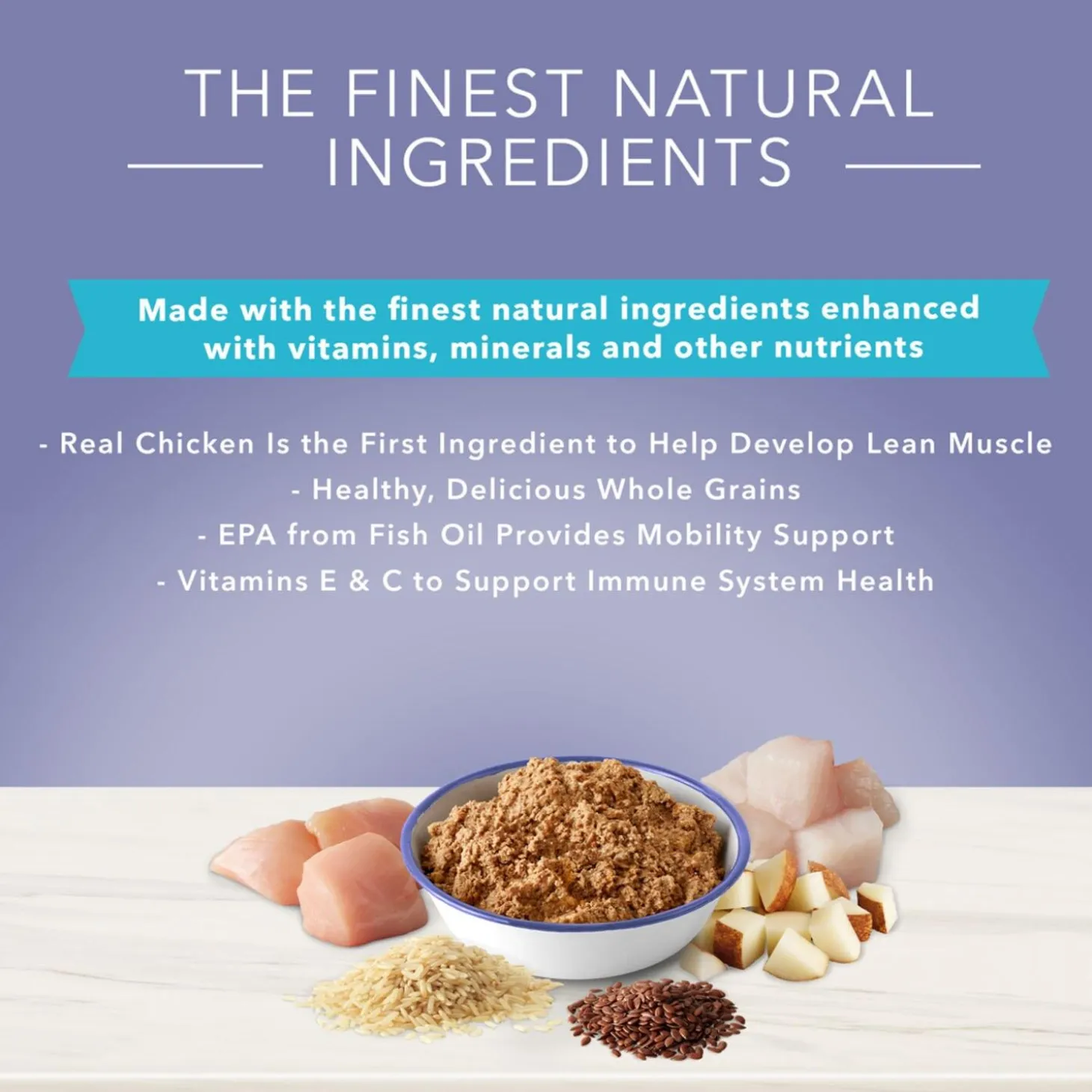 - NATURAL DOG FOOD: Formulated for the health and well-being of your adult dog and features the finest natural ingredients enhanced with vitamins and minerals It never contains chicken (or poultry) by-product meals, corn, wheat, soy, artificial flavours or preservatives