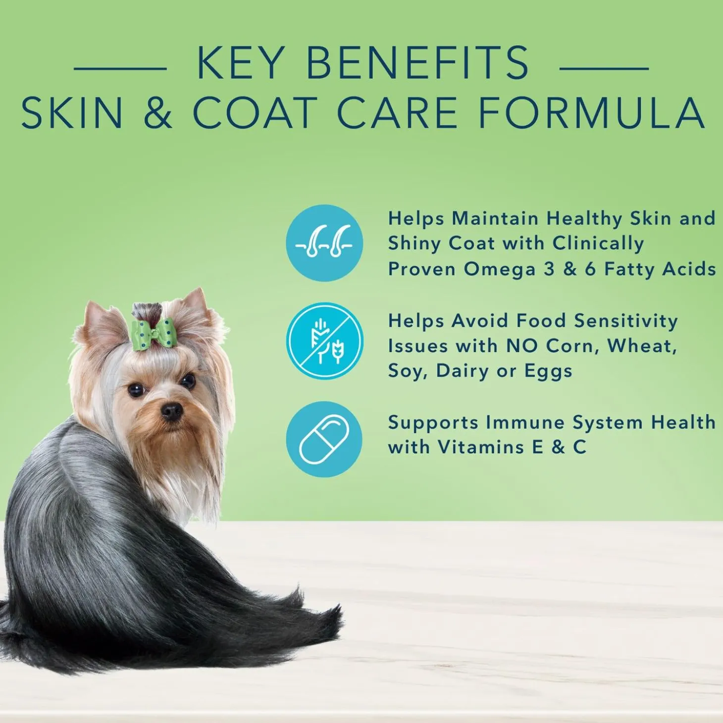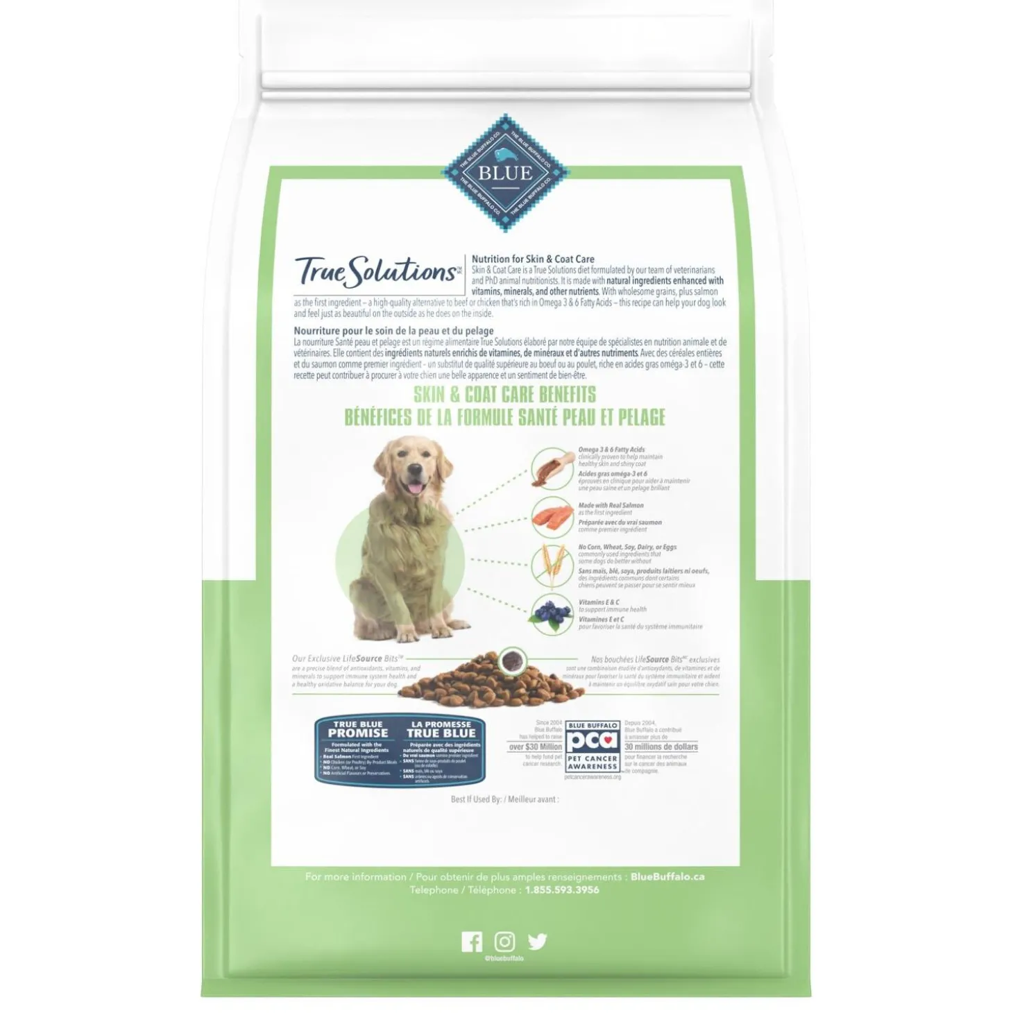 BLUE True Solutions Skin and Coat Care Formula Adult Dog Food helps your dog shine, naturally! Enhanced with vitamins, minerals and other nutrients, it includes Omega 3 and 6 fatty acids, clinically proven to support healthy skin and a shiny coat.