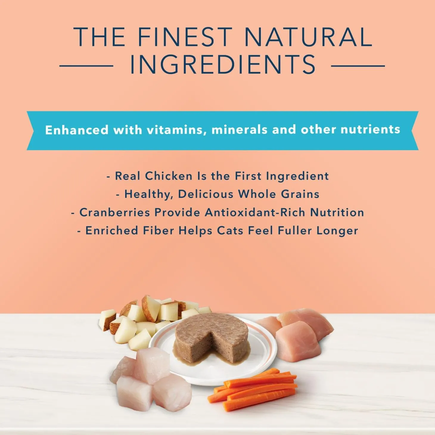 - Formulated by veterinarians, chicken-first Weight Control Formula is made with natural ingredients enhanced with vitamins, minerals and other nutrients. It includes L-Carnitine, clinically proven to support ideal weight, and added fibre so cats feel full