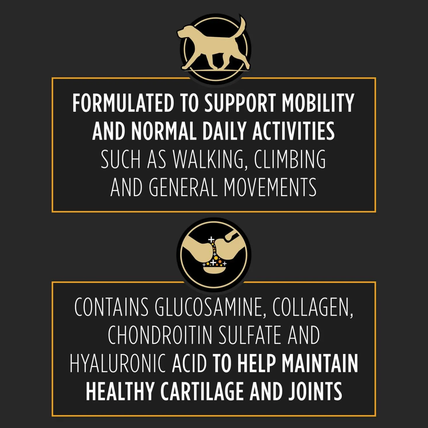Purina Pro Plan Veterinary Joint Care for Medium-Large Dog Supplements are formulated to support mobility and normal daily activity, and contains glucosamine, collagen, chondroitin sulfate and hyaluronic acid to provide important building blocks to help maintain healthy cartilage and joints. The science behind these supplements represents a collaboration among Purina nutritionists, researchers and veterinarians.