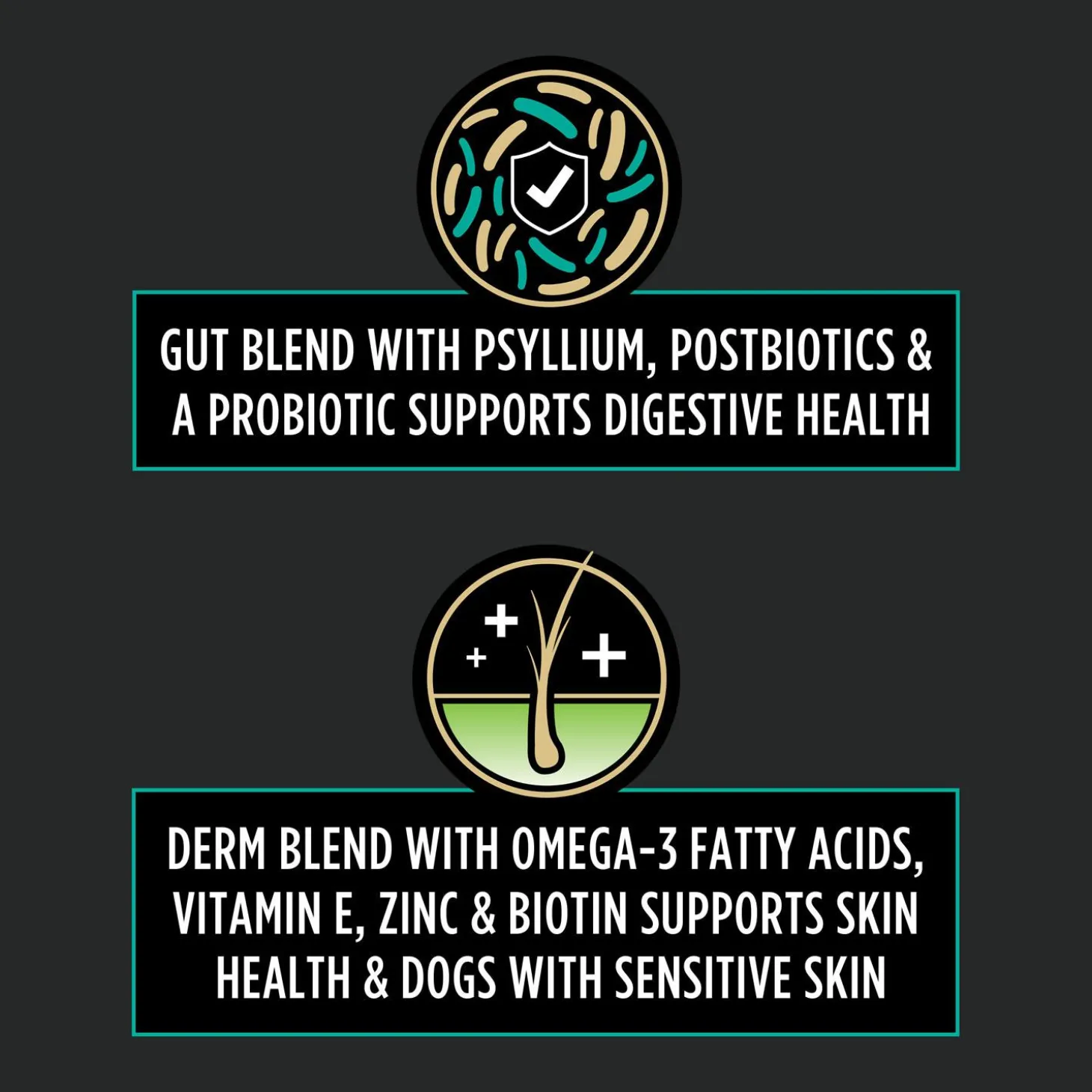 Purina Pro Plan Veterinary Multi Care Soft Chews Dog Supplements take a proactive approach to overall pet care by offering your dog these daily use supplement. This 3-in-1 supplement supports skin, digestive and immune health for dogs to help them their best. What makes this an excellent skin supplement for dogs is that it offers your dog omega-3 fatty acids, vitamin E, zinc, and biotin to support the skin health of dogs. Psyllium, postbiotics, and a probiotic supports digestive health. And to promote a strong immune system for your dog, these soft chews include L-glutamine, antioxidants and a probiotic. Give your dog a supplement that supports multiple body systems with Purina Pro Plan Veterinary Supplements Multi Care daily use supplement for dogs.