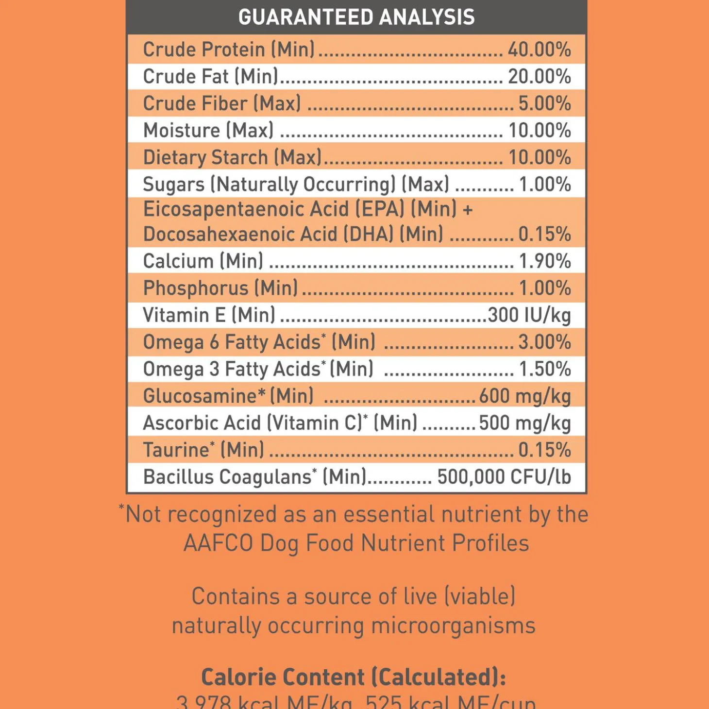 - 91% of protein from animal proteins to support strong muscles and lean body condition, and meet energy demands