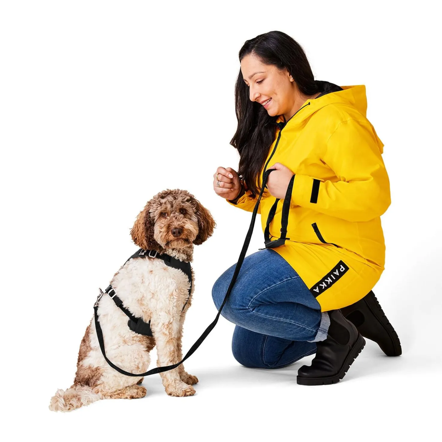 PAIKKA Visibility Black Dog Harness is ergonomic, reflective, and tested to withstand the pulling forces. The minimalistic look is also a sight for a sore eye. It is designed so that it doesn’t restrict the dog’s movement, and has a padded chest part that divides pulling forces to a larger area. It can be adjusted around the neck and girth for individual fit. Don’t you just hate when the adjustments keep sliding? Well, these adjustments are solid and stay put. With quick side release buckles, this harness is easy to put on and take off your pup.