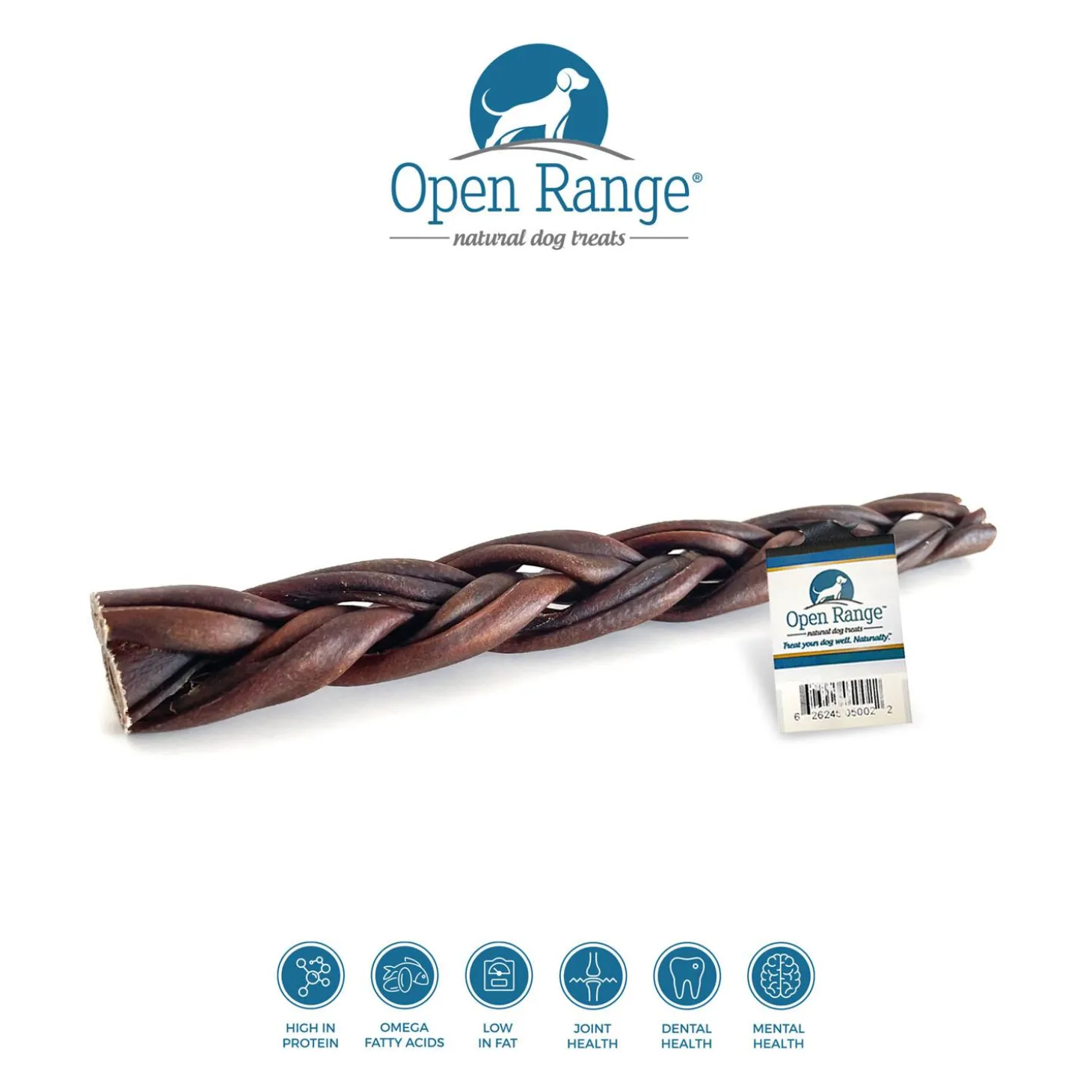 Open Range Water Buffalo Collagen Braided Stick Dog Treat is great for dogs with beef allergies! Enjoy the health benefits of the popular collagen sticks, without the beef allergy! Open Range Water Buffalo Collagen Bully Sticks are single-source protein treats that provide essential nutrients, vitamins, minerals, and they are very high in chondroitin and glucosamine. Collagen is found below the top layer of skin (two layers below the tough outer layer that is used for leather and upholstery and notably rawhide) and is one of the key elements in connective tissue. Collagen is like a glue that helps to hold things together.