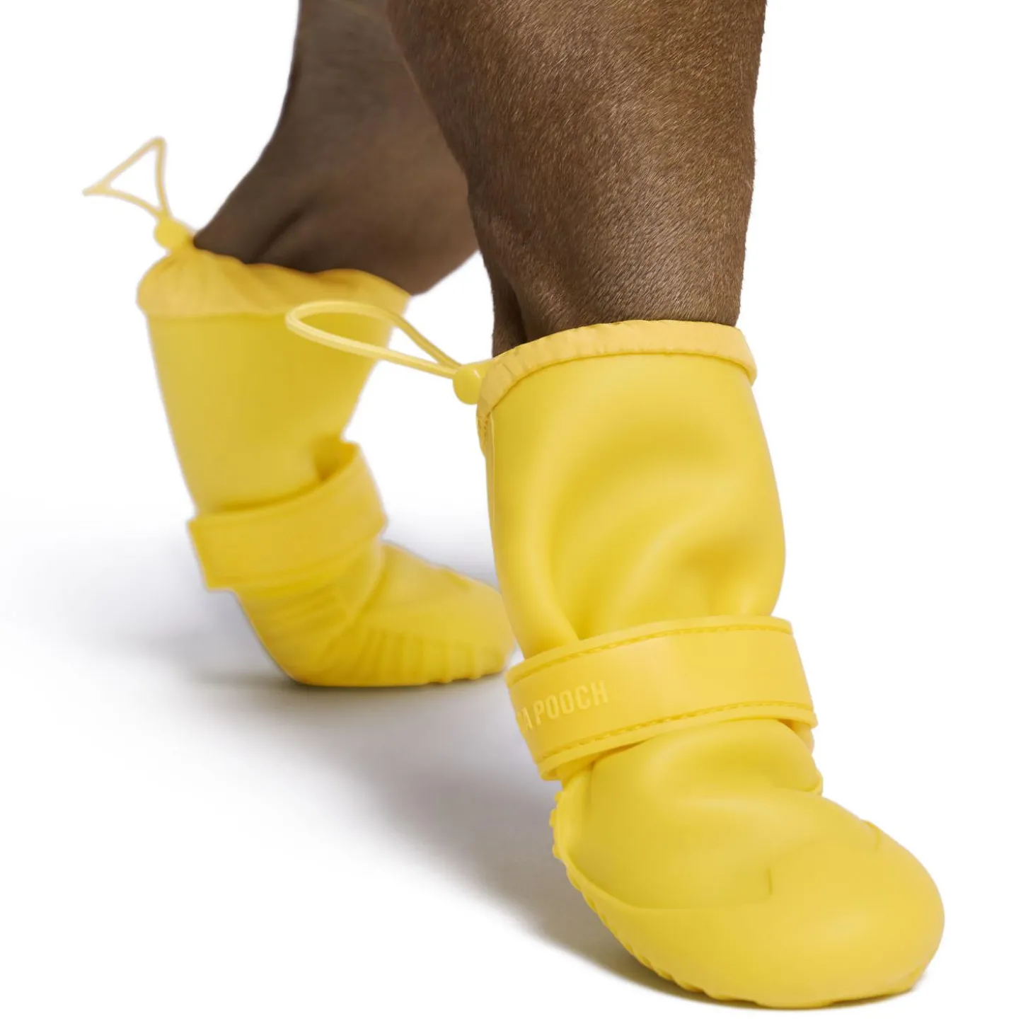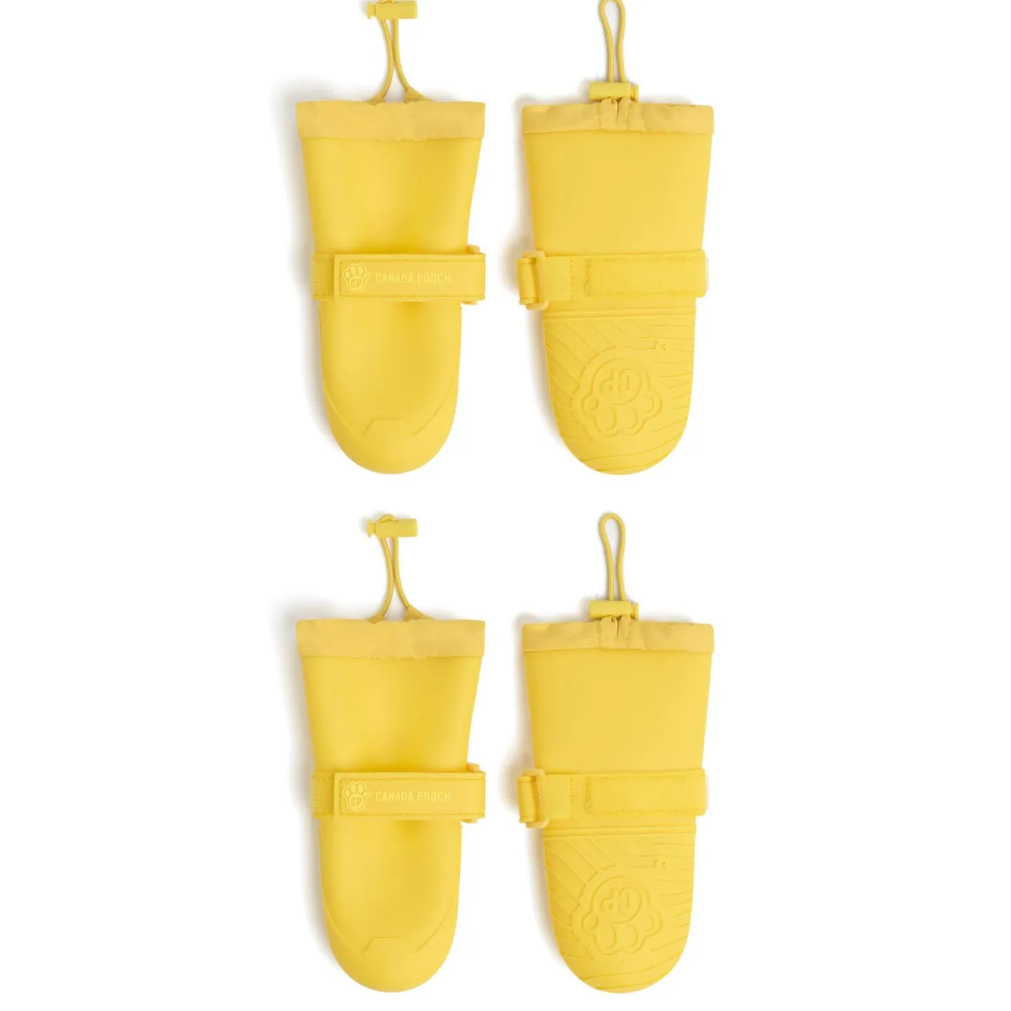 Canada Pooch Waterproof Yellow Rain Boots are the ultimate waterproof dog shoes that are easy to put on, stay on, and keeps dog paws dry and clean.