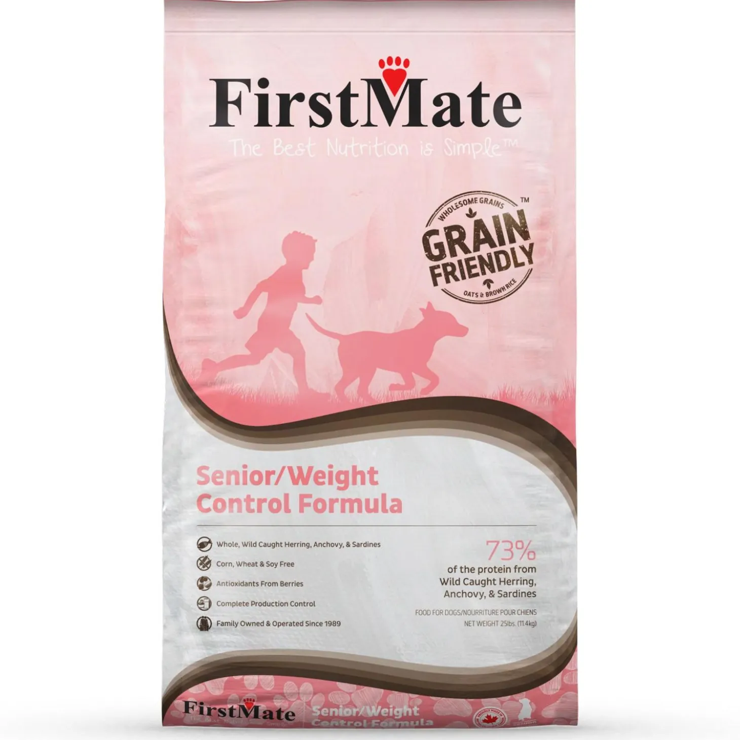 First Mate Weight Control Grain Friendly Formula Senior Dog Food is low in fat and contains wholesome, digestible grains, ideal for dogs with special needs. This grain friendly formula uses Wild Caught Herring, Anchovy, and Sardines as a healthy source of protein.