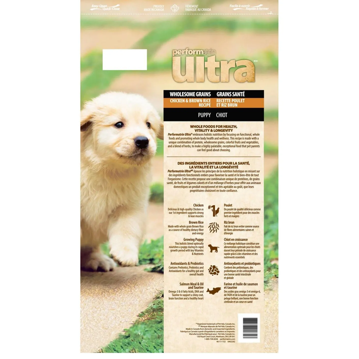 Performatrin Ultra Wholesome Grains Chicken & Brown Rice Recipe Puppy Food optimally nourishes your puppy during its rapid growth period with vitamins and nutrients from functional, whole foods. Made with high-quality chicken as the first ingredient it supports strong lean muscle and whole grain brown rice that is a source of healthy dietary fiber and energy. This recipe meets your puppy’s daily requirements and promotes whole body health and wellness.