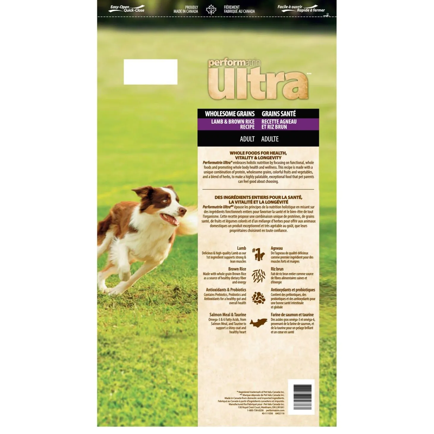 Performatrin Ultra Wholesome Grains Lamb & Brown Rice Recipe Adult Dog Food embraces holistic nutrition, focuses on functional, whole foods. Made with high-quality lamb as the first ingredient to support strong & lean muscle, and whole grain brown rice for healthy dietary fiber and energy. This recipe meets your dog’s daily requirements and promotes whole body health and wellness.