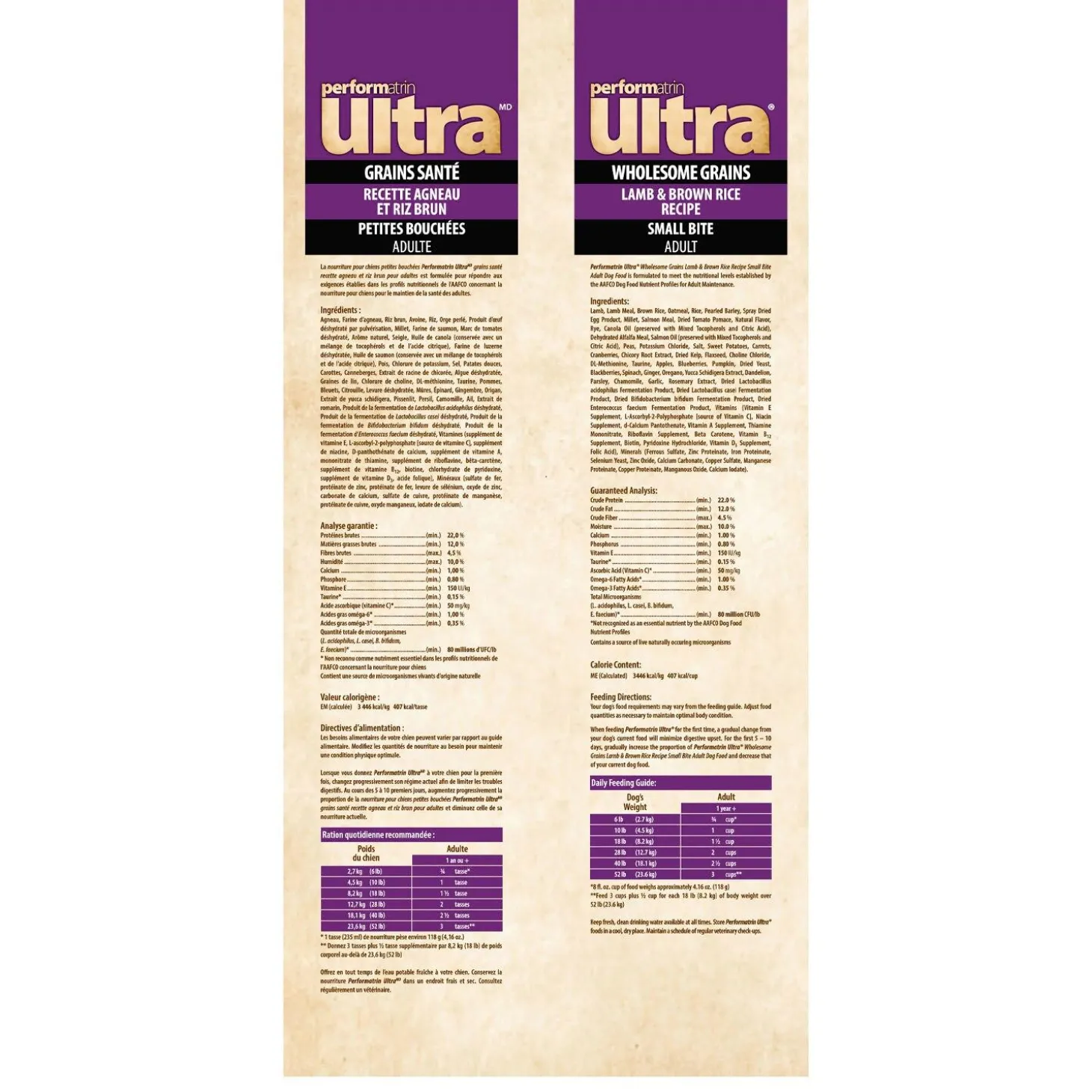Performatrin Ultra Lamb & Brown Rice Recipe Small Bite Adult Dog embraces holistic nutrition, focuses on functional, whole foods. Made with high-quality lamb as the first ingredient to support strong & lean muscle, and whole grain brown rice for healthy dietary fiber and energy. This recipe meets your dog’s daily requirements and promotes whole body health and wellness in a smaller kibble size.