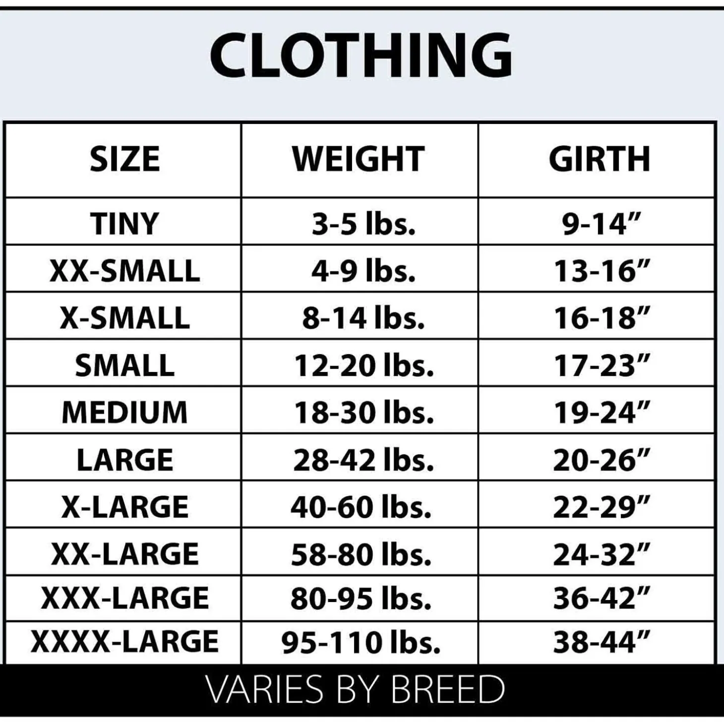 | XXXX-Large | 43-49.8kg (95-110lb) | 96.5-111.7cm (38-44″) |